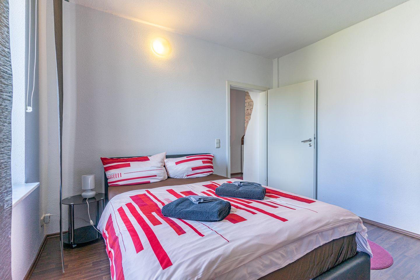 Oder Sie suchen sich einen öffentlichen Parkplätze in der Umgebung. Direkt vor dem Haus gibt es an der Hafenstraße einen Parkstreifen, wo man stundenweise (mit Parkscheibe) parken kann, so dass das Be- und Entladen bequem möglich ist. Es gibt einen Fahrradständer auf dem Hof.