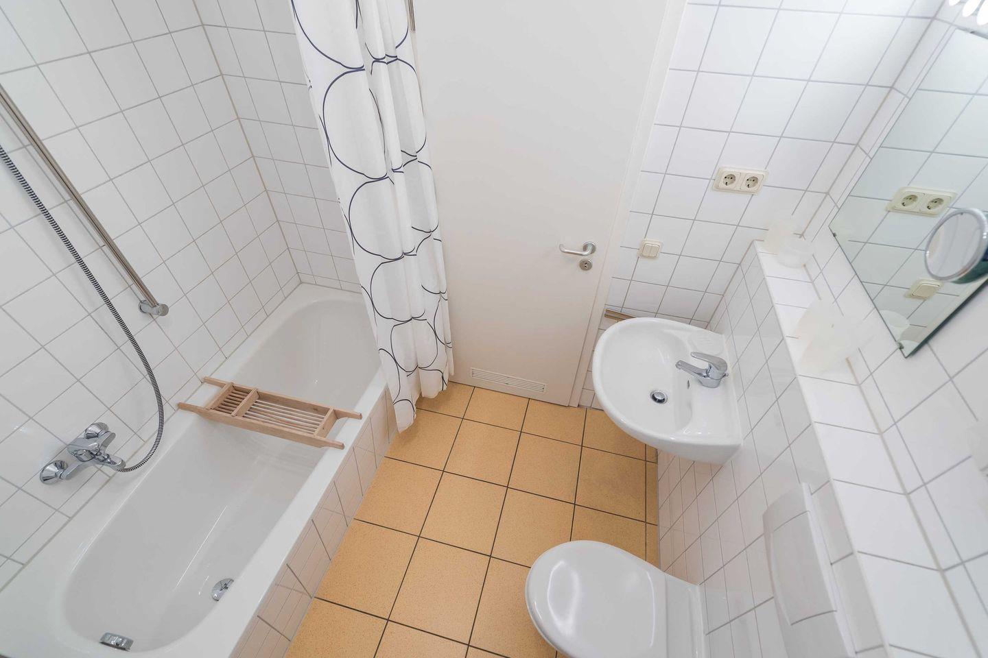 - helles, modernes Bad mit Badewanne (Duschabtrennung)