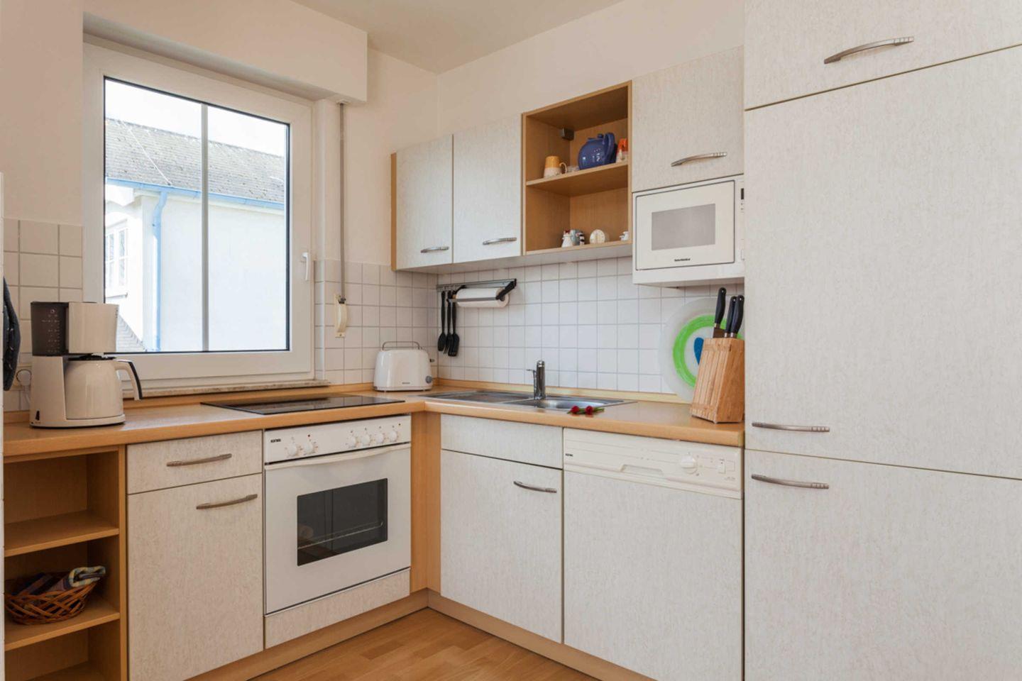 + offene und komfortabel ausgestattete Küche mit Ceranherd, Backofen, Mikrowelle, Geschirrspüler, Toaster, Kaffeemaschine, Wasserkocher etc.