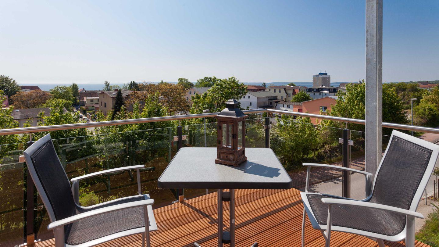 Moderne Ferienwohnung mit Panoramablick auf Ostsee und Sassnitz in ruhiger, zentraler Lage mit zwei Balkonen und hochwertiger Ausstattung.