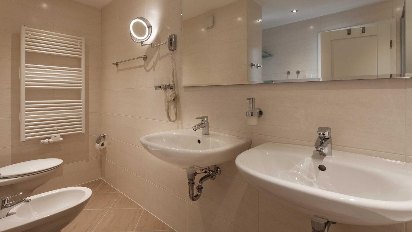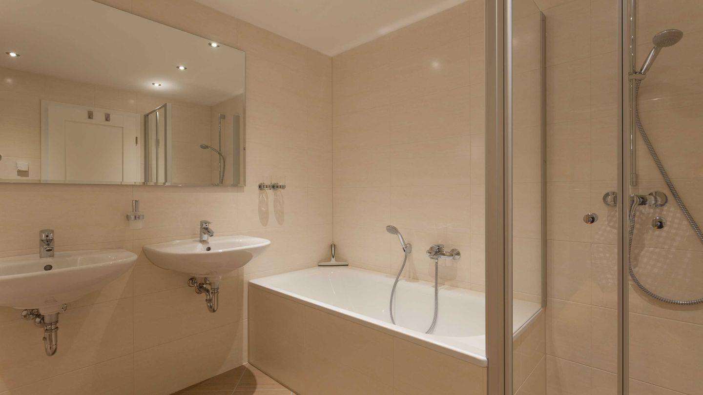 - großes, modernes Bad mit Doppelwaschtisch, Badewanne, separater Dusche, WC und einem Bidet
