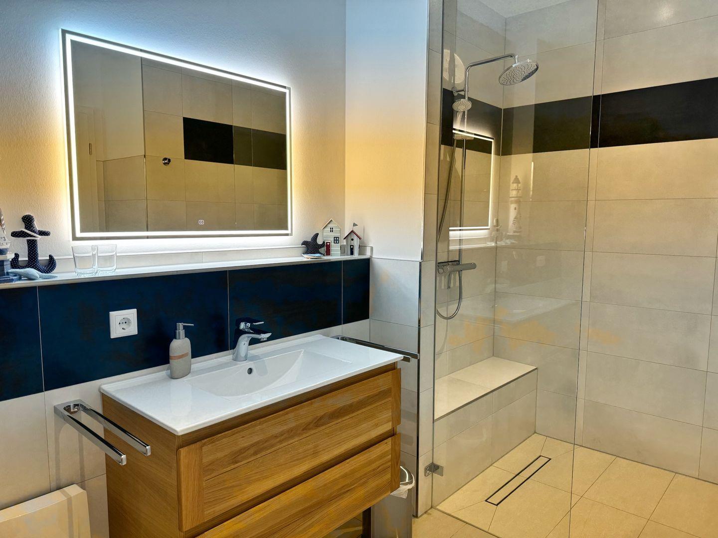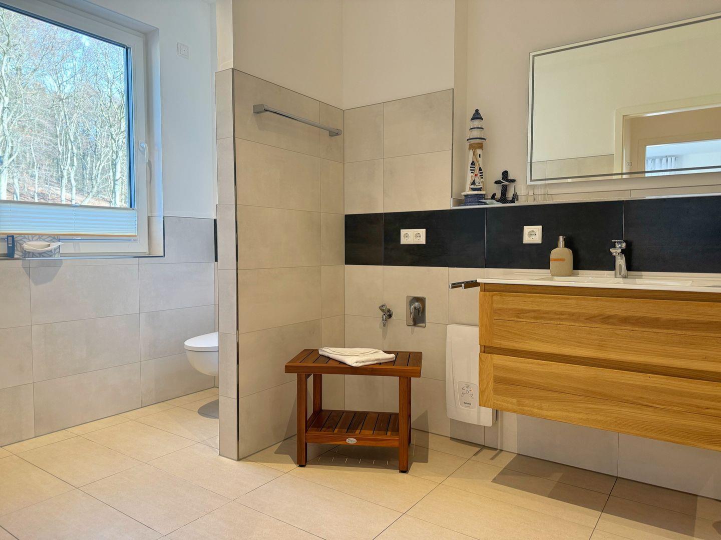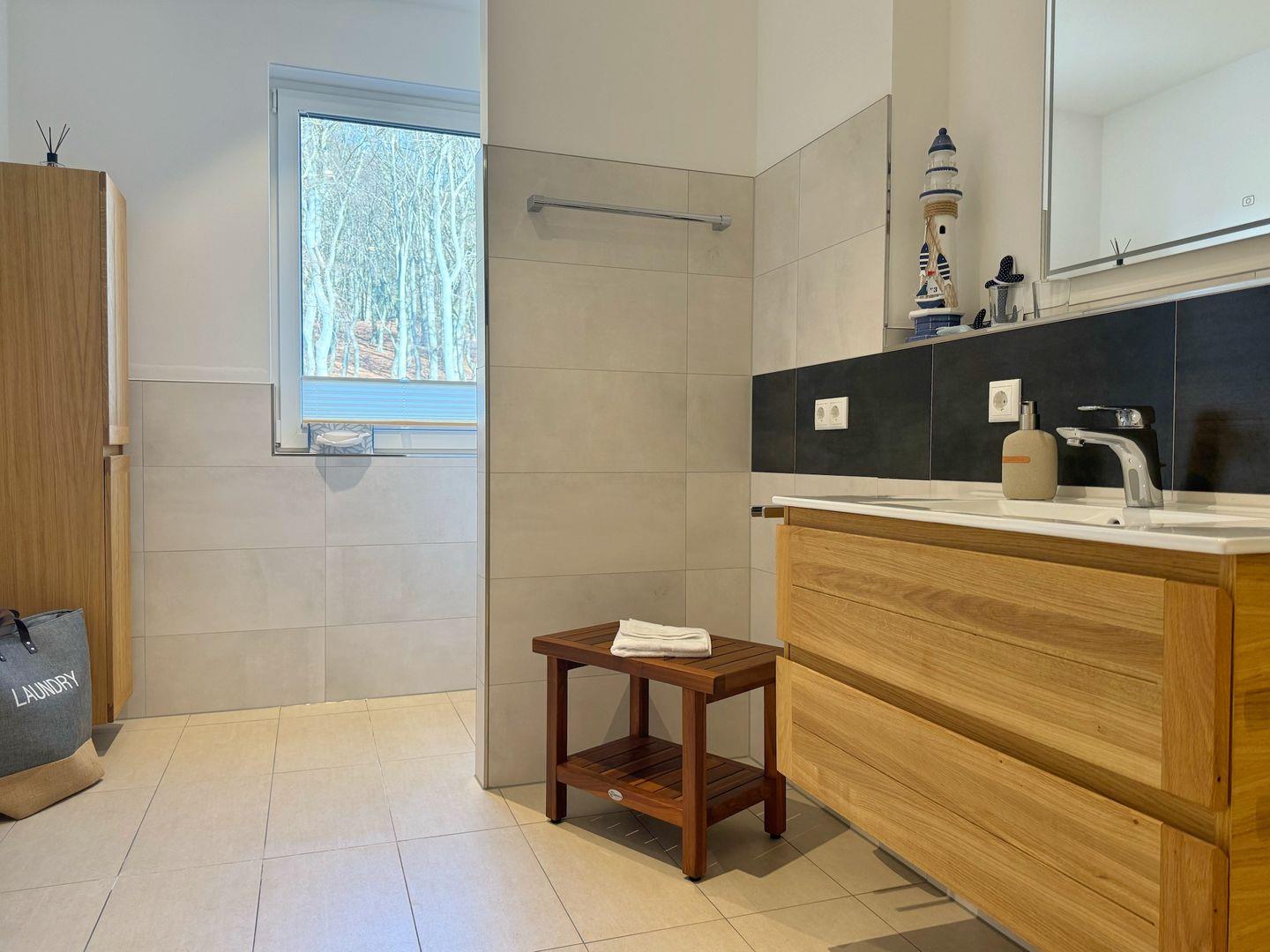 Im Bad gibt es eine ebenerdige Dusche.
