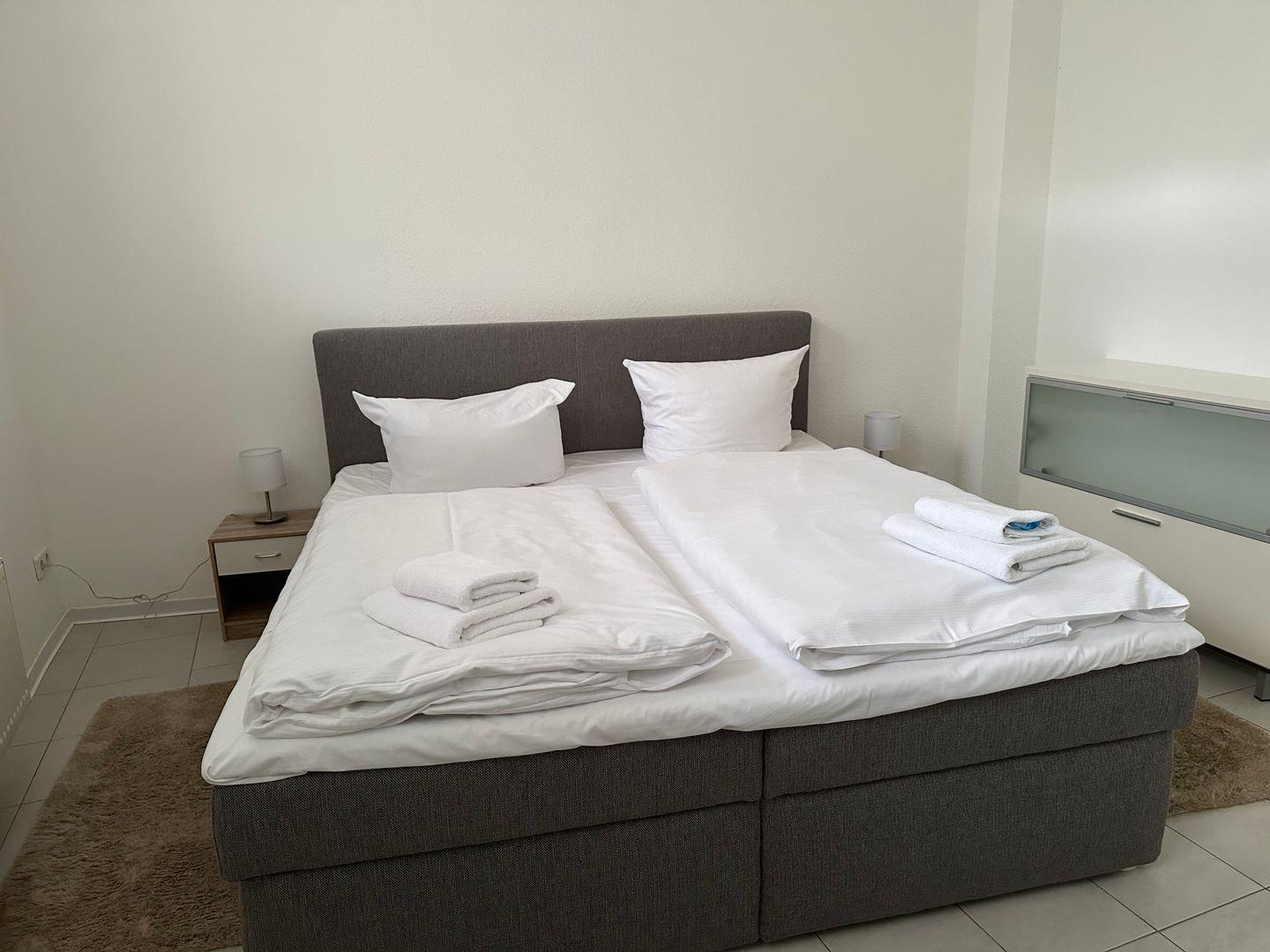 Sie besteht aus einem Wohnzimmer mit einem Esstische und gemütlichen Sofabereich, einem Schlafzimmer mit Boxspringbett, einer separaten voll ausgestatteten Küche sowie ein Badezimmer mit Dusche, Toilette, Waschmaschine und Waschbecken. Die Wohnung verfügt außerdem über einen PKW-Aussenstellplatz, der sich etwa 50 m entfernt von der Wohung befindet.
