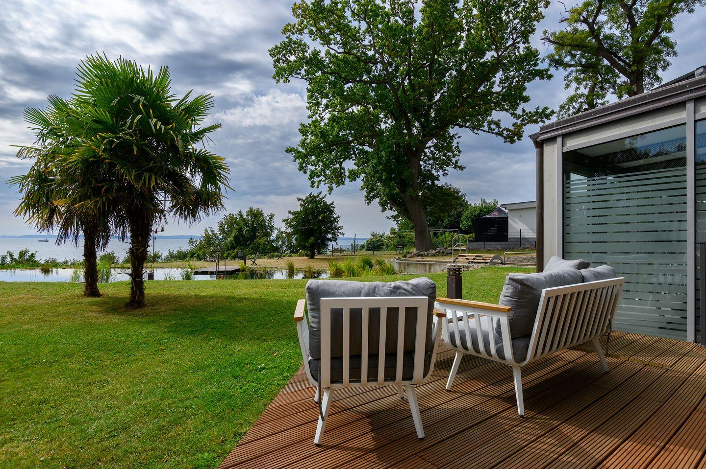 Im Wohnbereich befindet sich ein Schlafsofa (Liegefläche: 140?cm), das Platz für zwei weitere Personen bietet – somit ist die Wohnung ideal für bis zu 6 Personen. Die große Terrasse eröffnet nicht nur einen herrlichen Meerblick, sondern auch direkten Zugang zum Schwimmteich, zu den Gartenliegen sowie zur Gemeinschaftssauna und dem Fitnessraum.