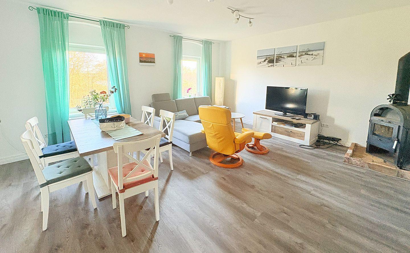 Wohnung Ole liegt im ersten Obergeschoss und ist nur in Kombination mit Wohnung Jan buchbar. Sie eignet sich besonders gut für größere Familien oder gemeinsam reisende Freunde (max. 8 Personen im Haus insgesamt). Wohnung Ole kann nicht einzeln gemietet werden.