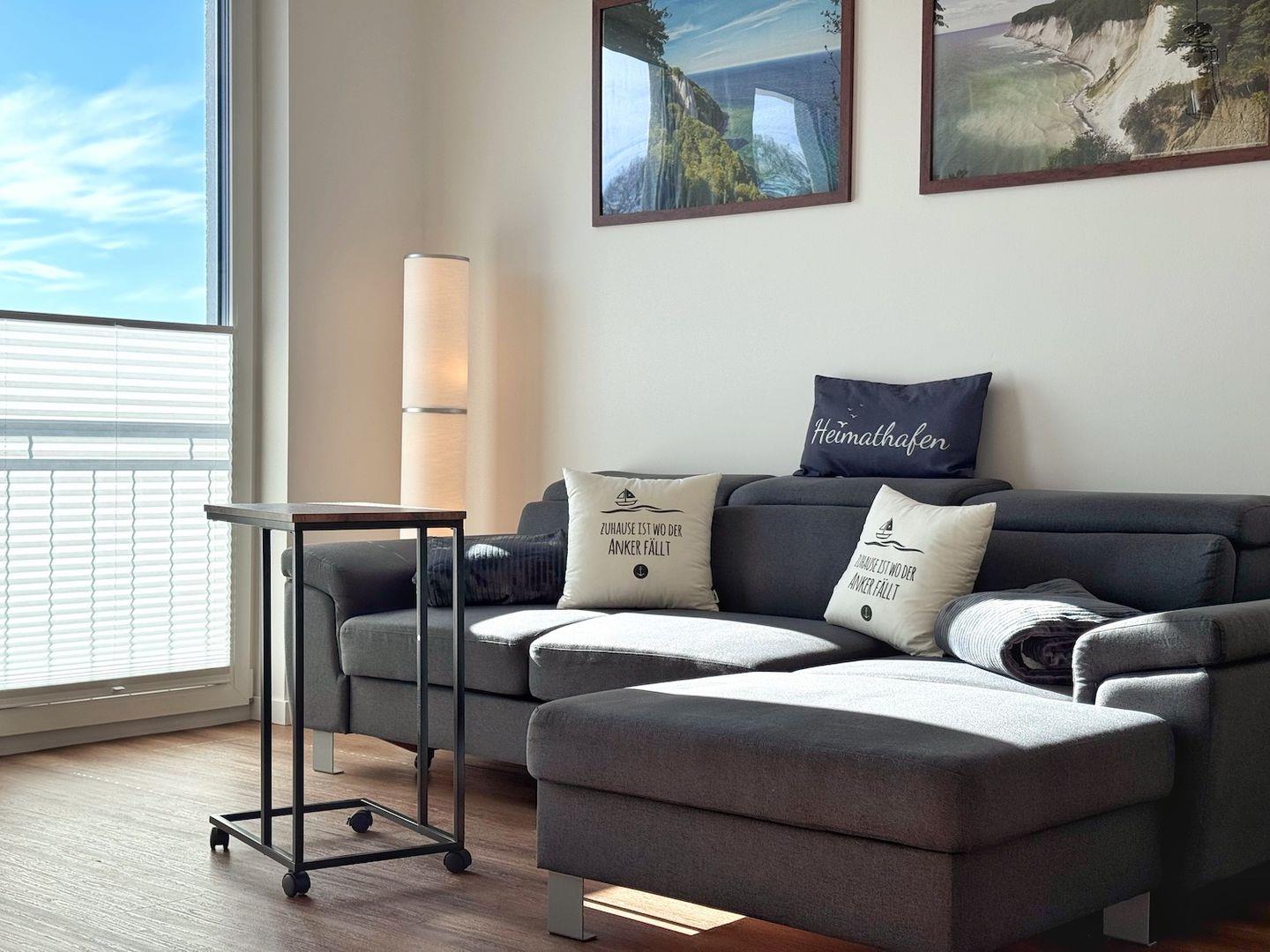Moderne Ferienwohnung Heimathafen in Sassnitz mit Balkon, Aufzug und privatem Parkplatz, nur 400 m vom Meer entfernt.