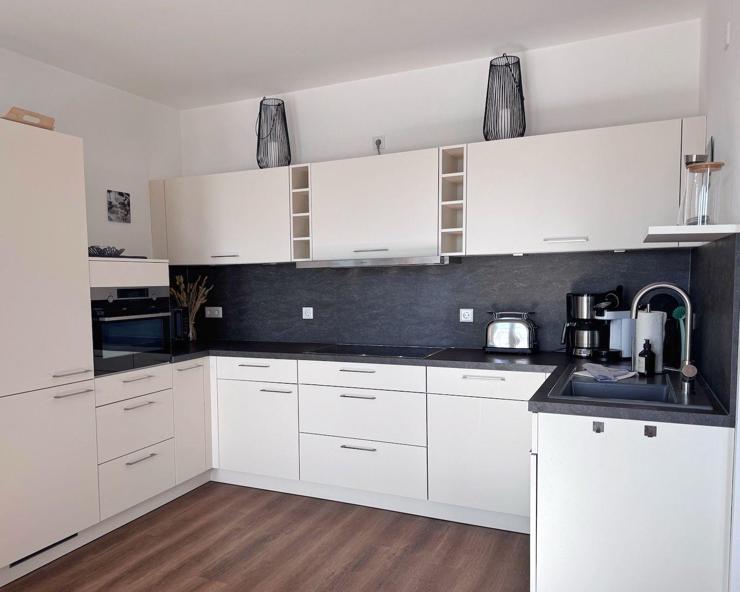 Die Wohnung verfügt über 2 Zimmer, darunter ein separates Schlafzimmer sowie ein Wohnzimmer mit Sofaecke und Essbereich. Der offene Wohnbereich verbindet Wohnen und Kochen angenehm miteinander: Die Küche ist zum Wohnzimmer hin offen gestaltet und vollständig ausgestattet, sodass Sie sich flexibel selbst versorgen können. Zur Küchenausstattung gehören Ceran-Herd und Backofen, Mikrowelle, Spülmaschine, Kühlschrank mit Gefrierfach, Kaffeemaschine, Wasserkocher und Toaster. Küchenutensilien sowie Geschirr und Besteck sind vorhanden, ebenso Geschirrhandtücher und ein Abfalleimer. Für Unterhaltung und Komfort stehen TV sowie Internet/WLAN zur Verfügung. Eine Erstausstattung und Reinigungsmittel sind ebenfalls vorhanden.