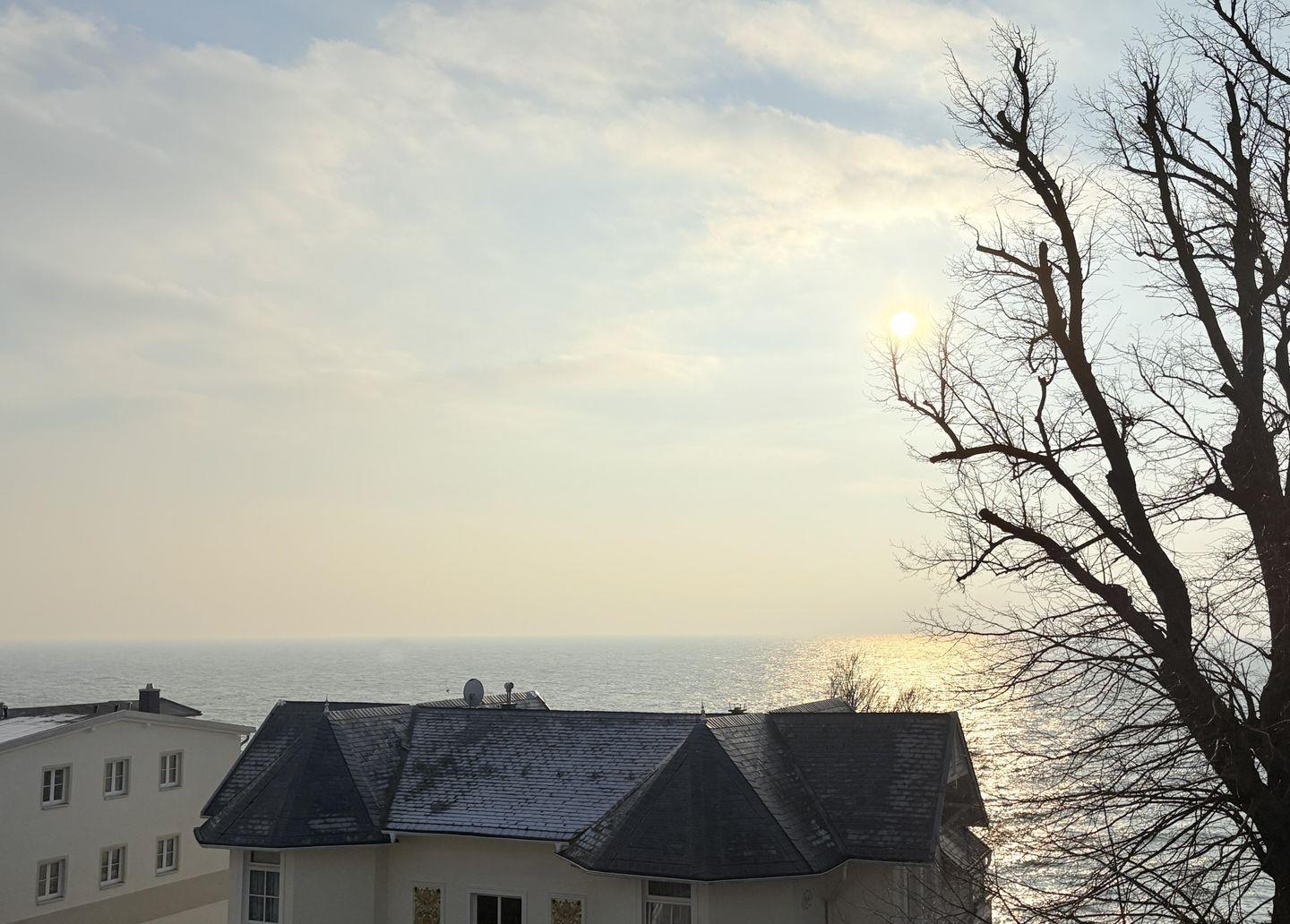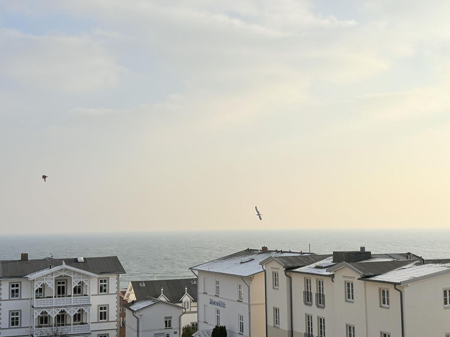 Über den Dächern der Altstadt von Sassnitz genießen Sie beim Essen oder auf der Couch den FREIEN WEITBLICK auf die Ostsee