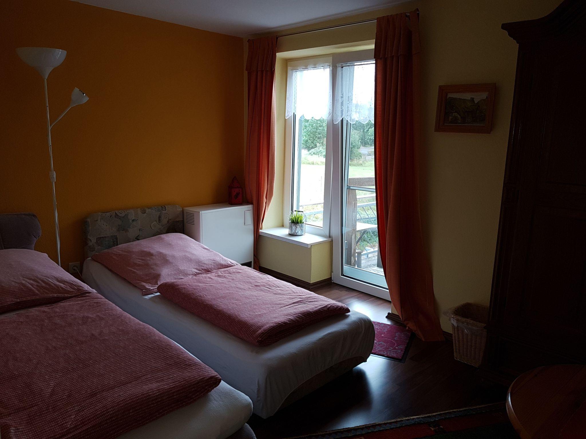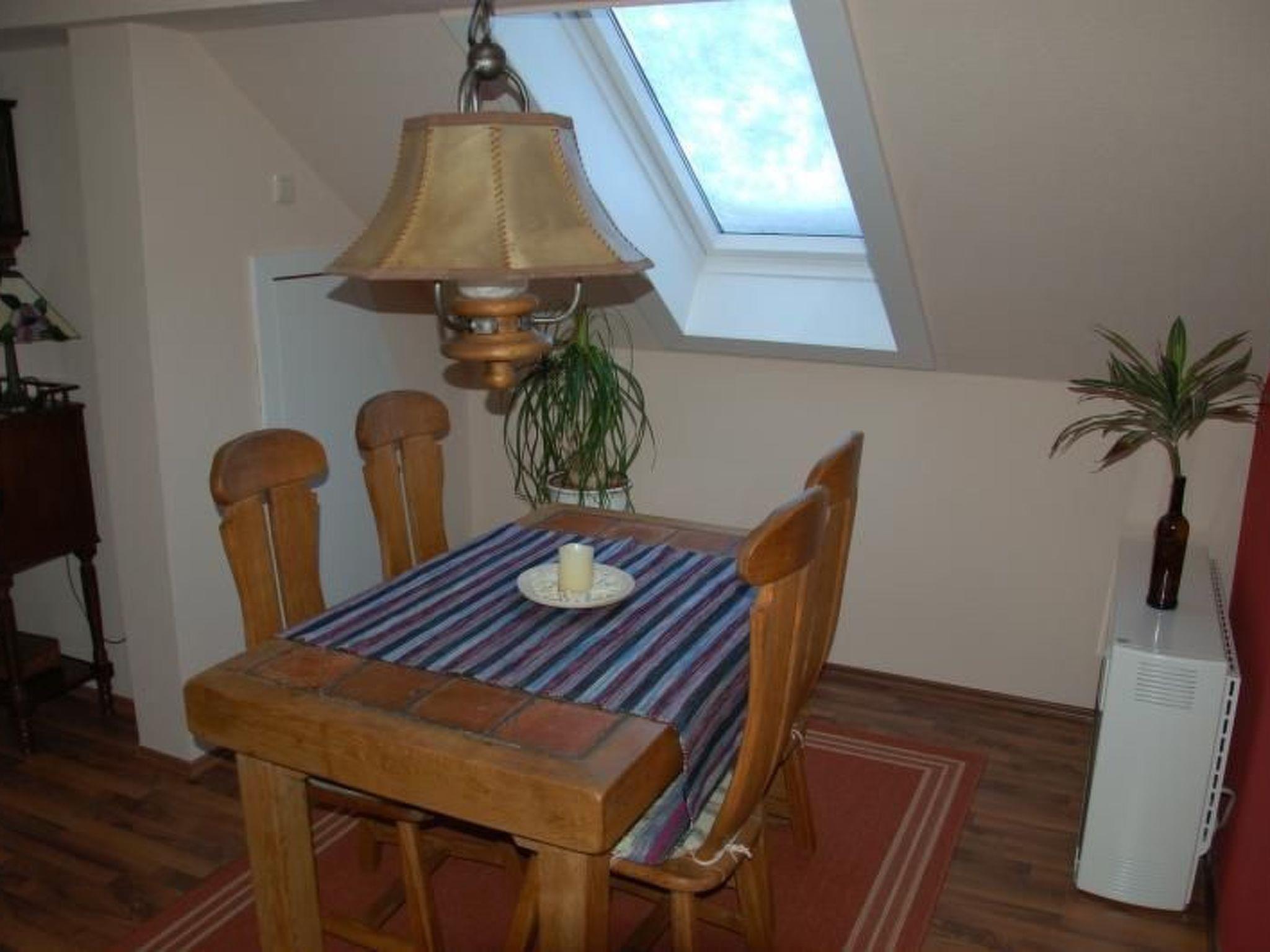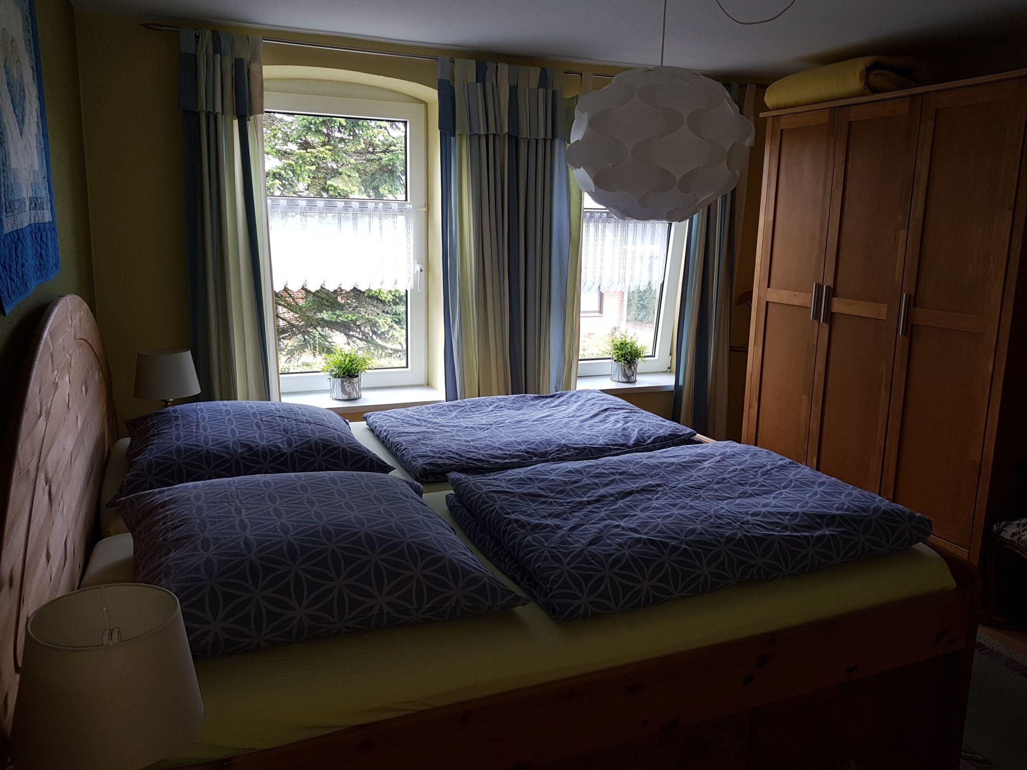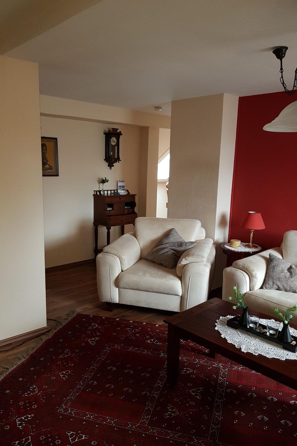 Die schöne und gemütliche Nichtraucher- Ferienwohnung befindet sich in der ersten Etage eines Zweifamilienhauses und ist über einen separaten Eingang / Treppe erreichbar. Es erwartet Sie ein helles Wohn- und Esszimmer mit TV, DVD und Radio-CD-Player, ein Schlafzimmer mit Doppelbett, ein Balkonzimmer mit zwei weiteren Schlafplätzen, ein Frühstücks-Balkon mit Gartenmöbeln, Schirm und Auflagen, ein komfortables Duschbadezimmer, eine schicke Küche mit Herd, Backofen, Mikrowelle und Geschirrspüler, sowie ein zusätzliches WC mit einer Wasch-Trocknerkombination. Insektenschutz befindet sich an Fenstern und Balkontür. Bettwäsche, Handtücher und Geschirrtücher sind vorhanden. Auf Anfrage sind Haustiere erlaubt.