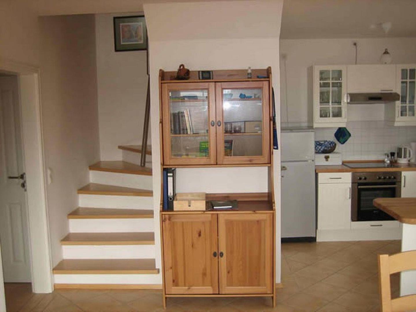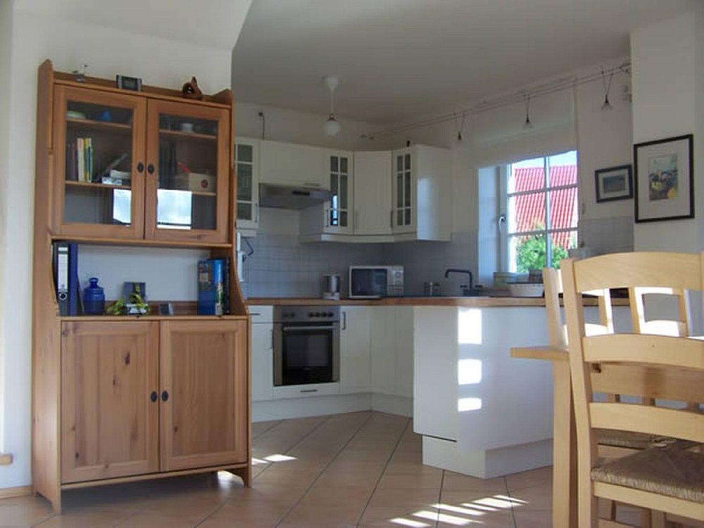 Die Innenausstattung des Ferienhauses überzeugt mit einer modernen und hochwertigen Ausstattung. Der offene Küchen-, Ess- und Wohnbereich schafft eine einladende Atmosphäre, in der Sie gemeinsame Mahlzeiten genießen und gemütliche Abende verbringen können. Die Küche ist komplett eingerichtet und verfügt über einen Geschirrspüler, eine Mikrowelle, einen Kühlschrank mit Gefrierfach, ein Ceran-Kochfeld, einen Umluftbackofen, eine Kaffeemaschine und einen Wasserkocher. Eine Dunstabzugshaube sorgt dafür, dass beim Kochen keine Gerüche entstehen.