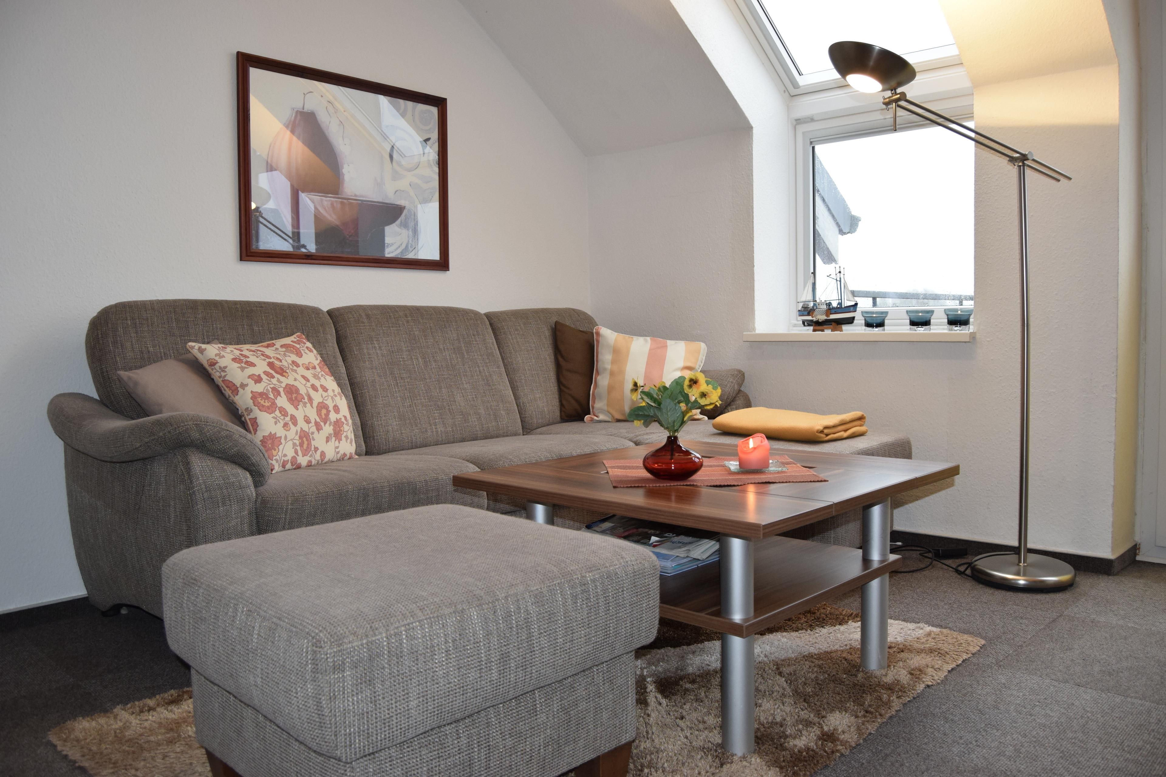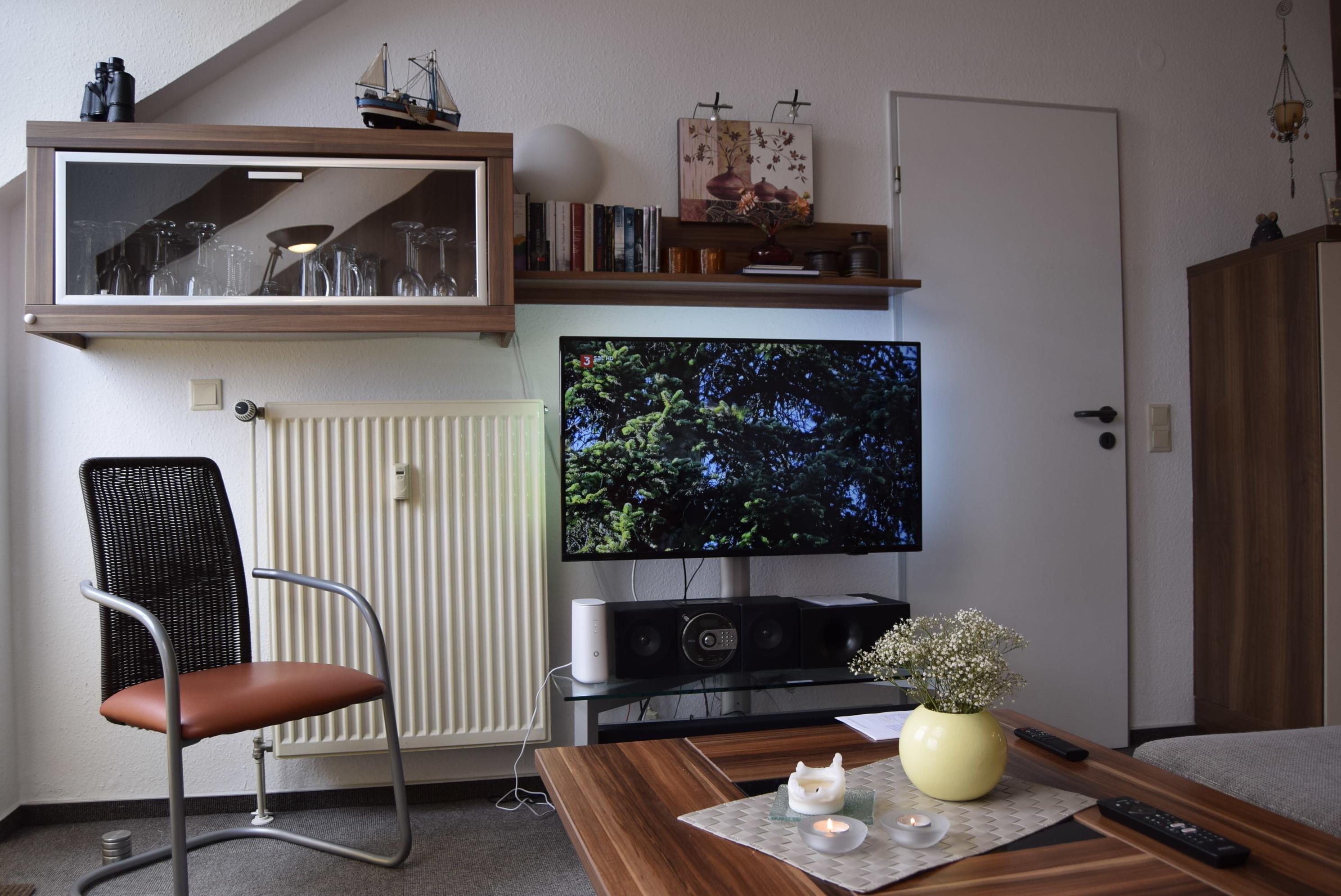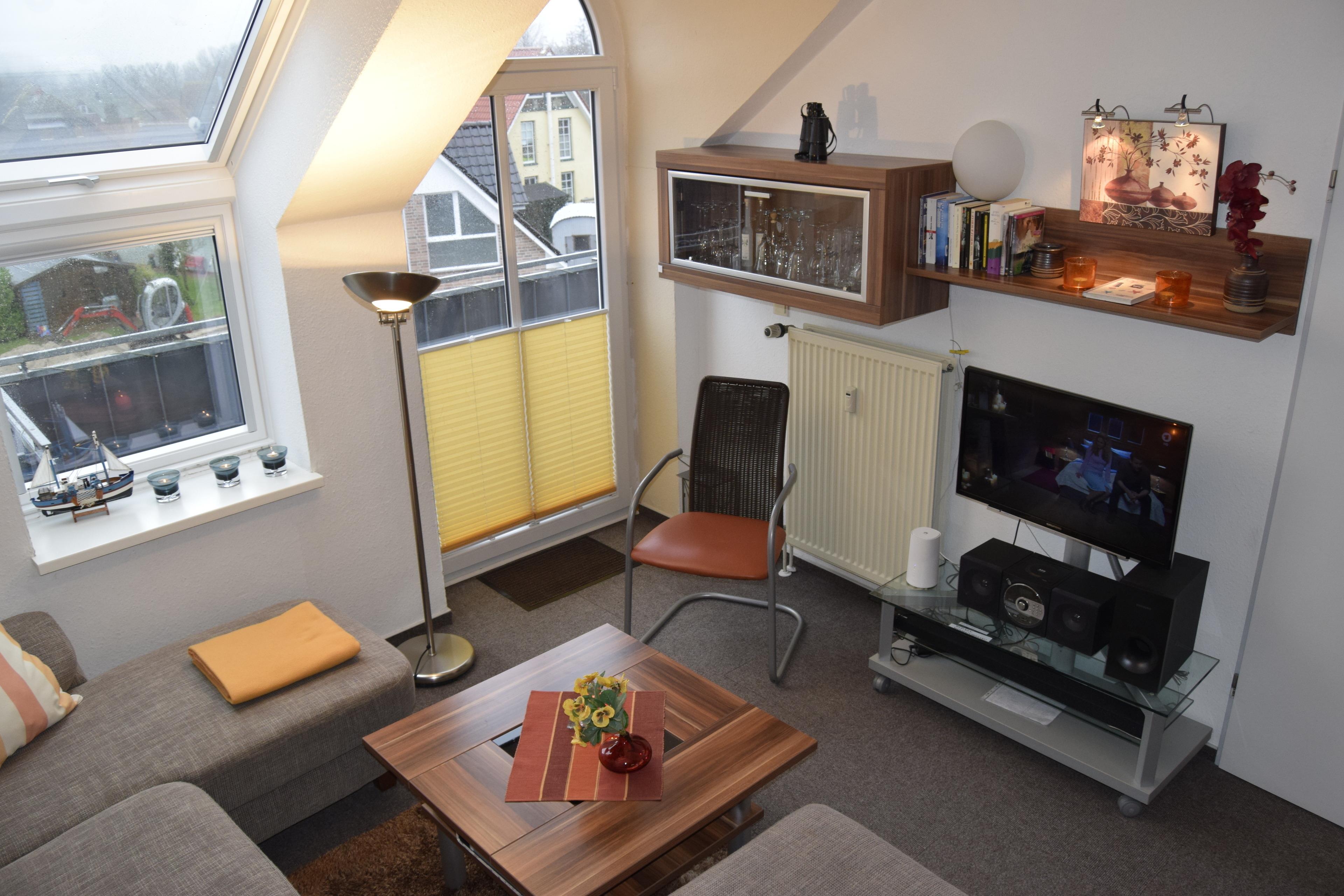 Der Wohnbereich zeichnet sich durch ein gemütliches Sitz- und Schlafsofa aus. Selbstverständlich finden Sie ein Flachbild-TV-Gerät mit DVB-Receiver und eine Mini-Stereo-Anlage mit CD-Player vor. Eine reichhaltige Spielesammlung sollte dafür sorgen, dass keine Langeweile aufkommt.