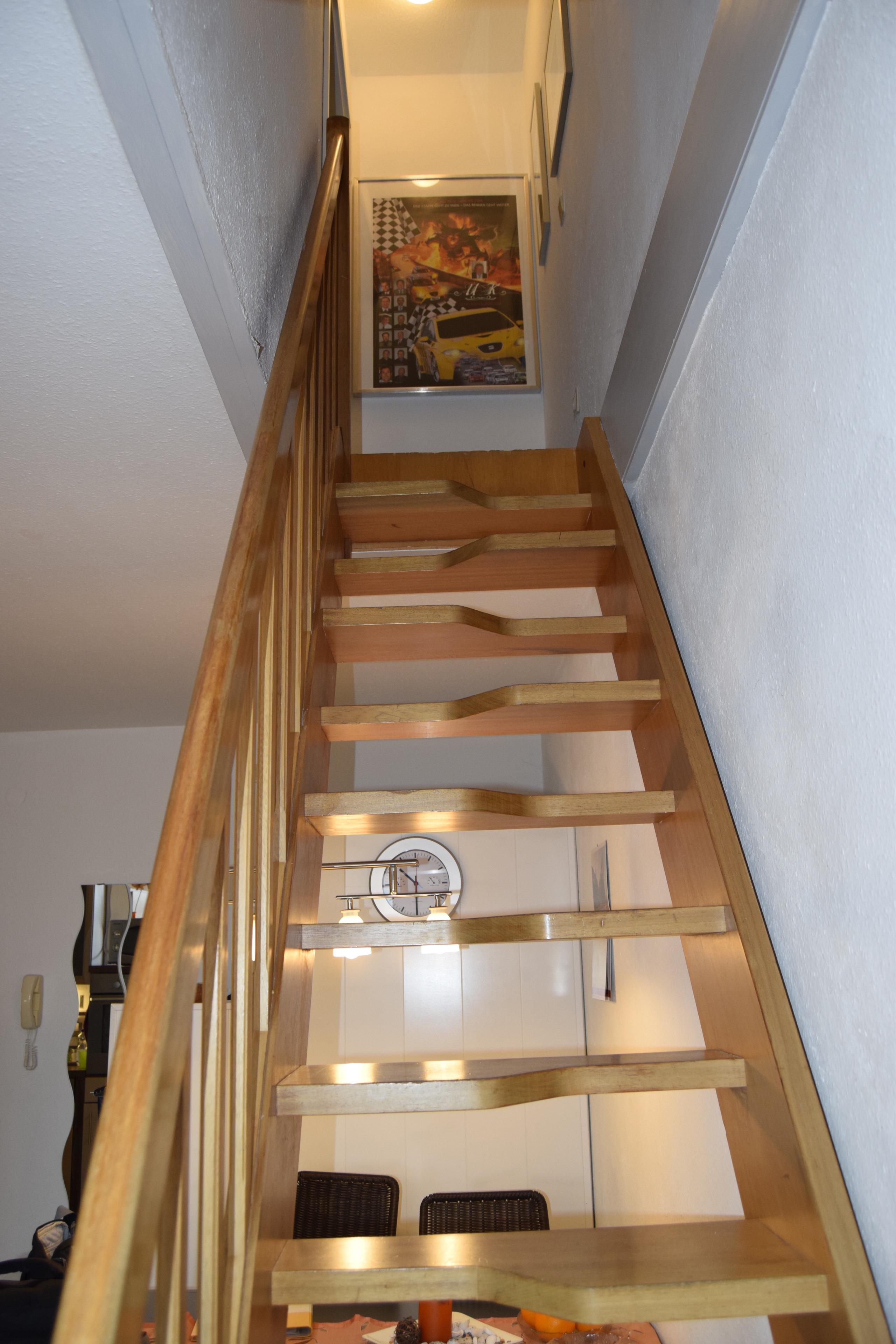 Über eine Raumspartreppe ("Sambatreppe") gelangen Sie in den oberen Bereich der Wohnung. Hier steht Ihnen ein komplettes Schlafzimmer mit einem Doppelbett zur Verfügung und im gleichen Raum die Kinder-Spiel- und Schlafecke mit Schlafmöglichkeiten für ein großes Kind (auf der Matratze) und ein Kind bis ca. 7 Jahre (im Kinderbett). Außerdem ist hier ein DVD-Player mit Bildschirm vorhanden.