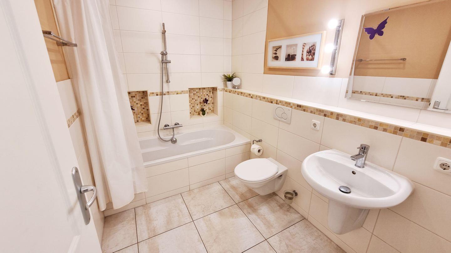 Badezimmer I: Badewanne / Waschbecken / WC / Föhn