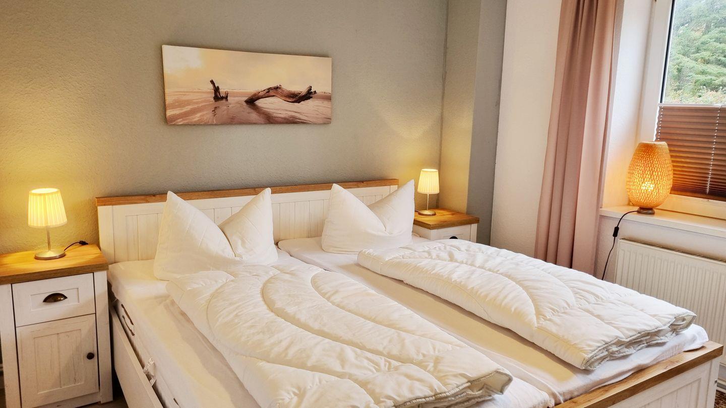 Schlafzimmer II: 2 Einzelbetten (90x200cm) / Schrank / Plissees