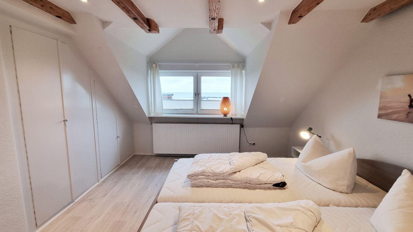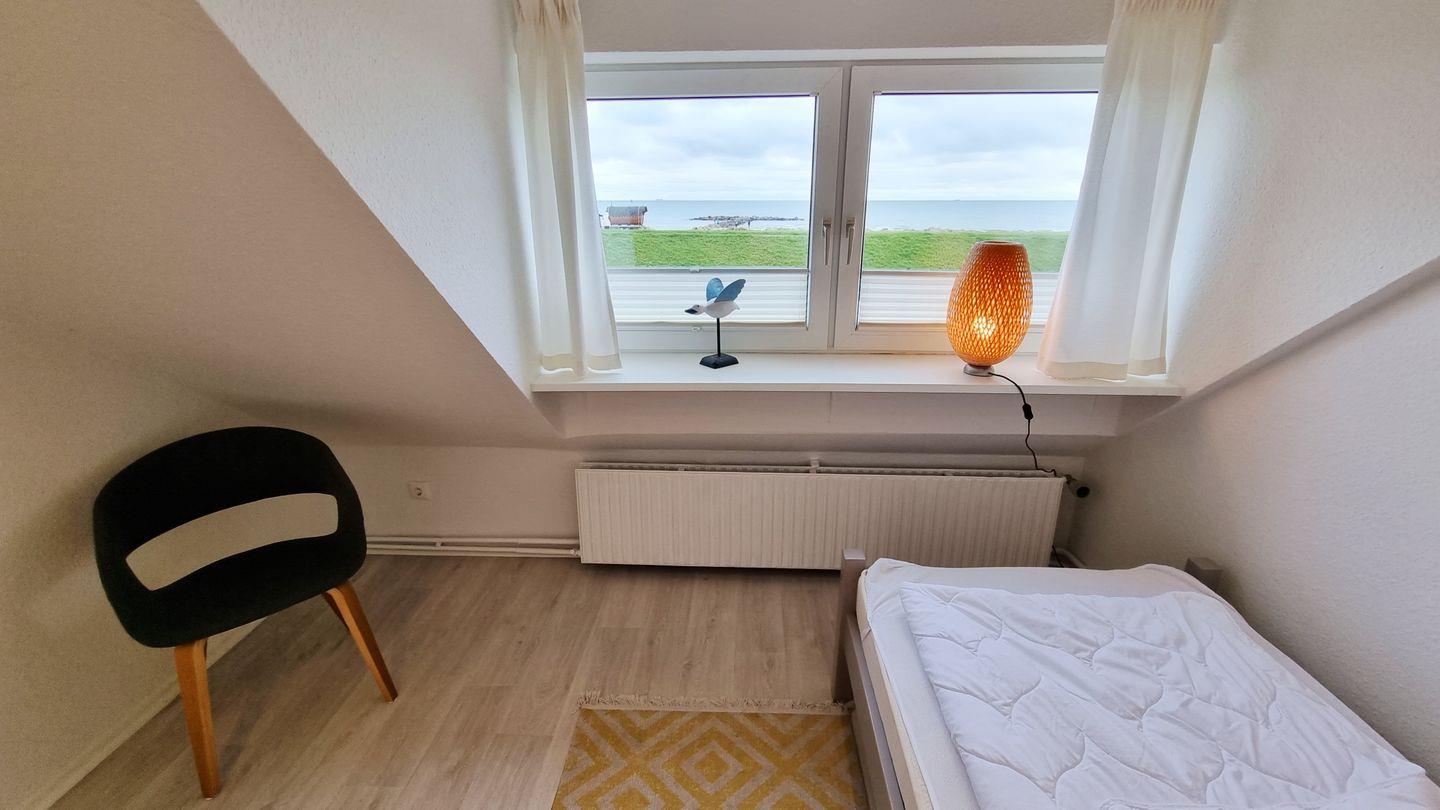 Schlafzimmer II: Einzelbett (90x200cm) / Schrank / Meerblick / Plissees
