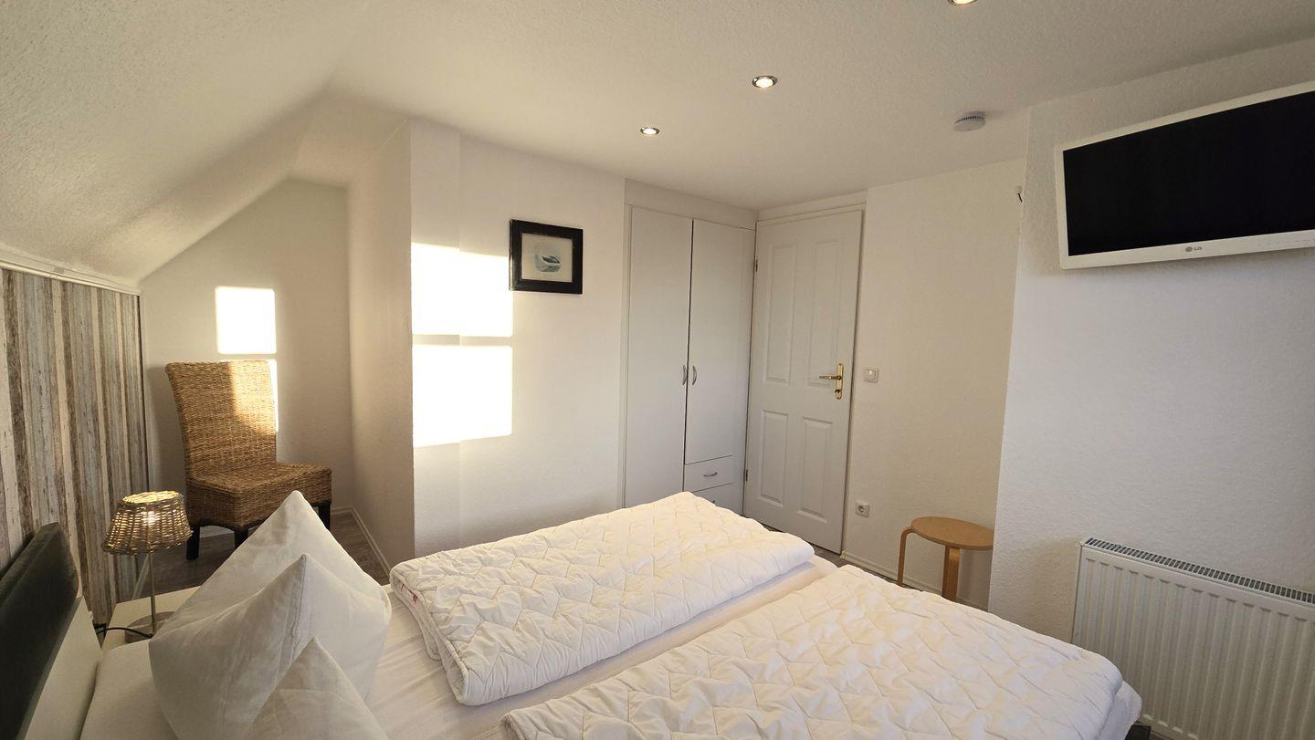 Schlafzimmer I: Doppelbett / Schrank / Fernseher
