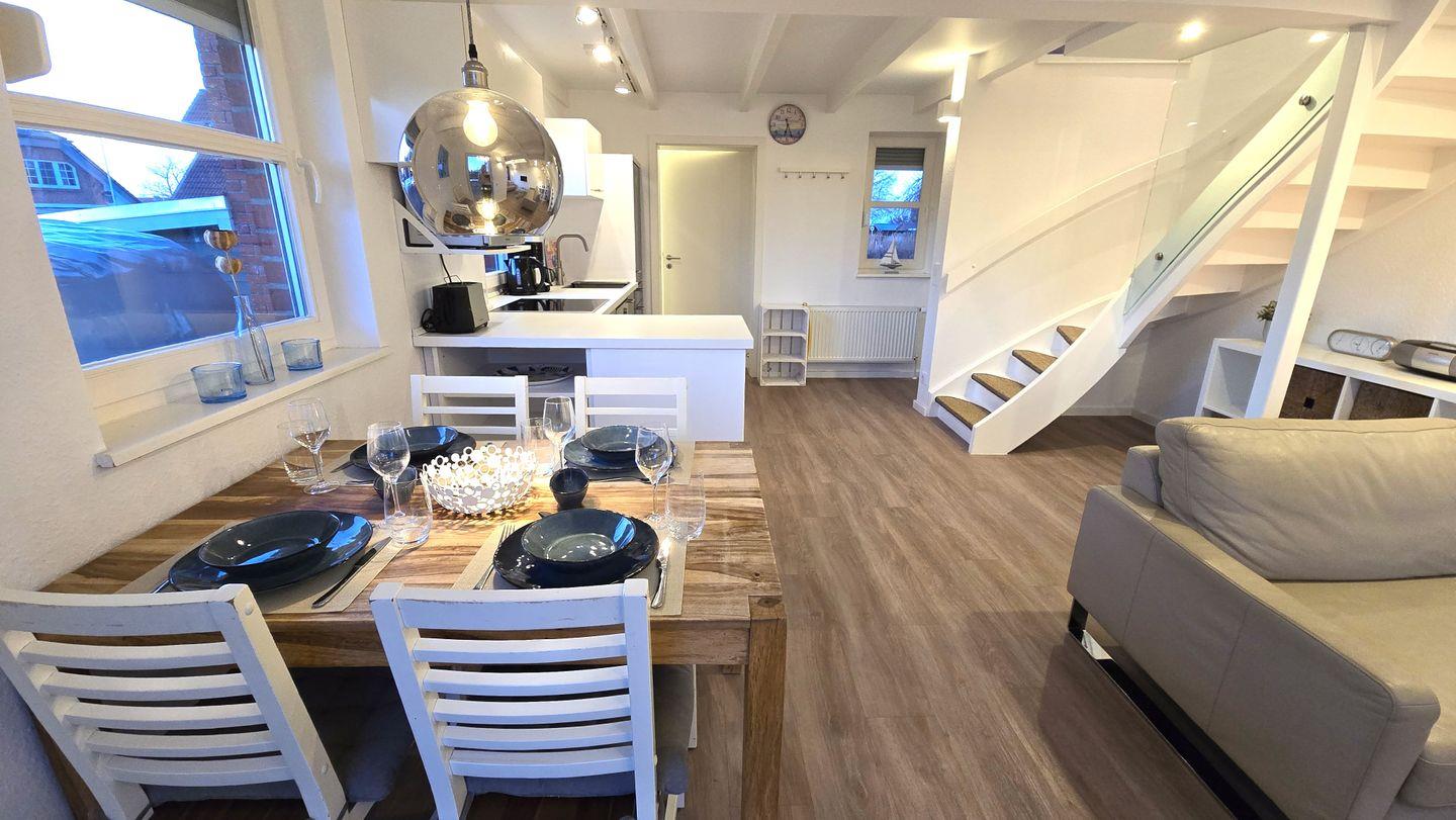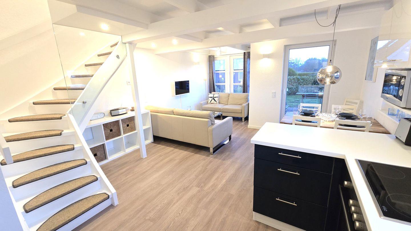 Die hochwertig ausgestattete Doppelhaushälfte bietet euch ein modernes, lichtdurchflutetes Ambiente mit offenem Wohn- und Essbereich, voll ausgestatteter Küche, drei separaten Schlafzimmern sowie einem stilvollen Duschbad. Hier genießt ihr Komfort, Gemütlichkeit und Raum für gemeinsame Zeit.