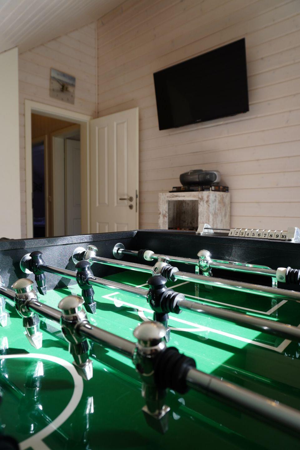 Wie beginnt ein toller Urlaubstag? Ausgeschlafen, erholt und meist mit einem Heißgetränk. Daher ist jedes der 3 Schlafzimmer mit einem komfortablen und hochwertigem Boxspringbett ausgestattet - maximaler Komfort garantiert. Im oberen Stockwerk kann jedoch nicht nur geschlafen werden, sondern auch im separaten Spielzimmer in zahlreichen Spielen ein Gewinner ermittelt werden. Ein Highlight des Spielzimmers ist der Kicker. Sowohl jung, als auch alt kommen hier auf ihre Kosten. Die 2 Duschbäder der Windrose II verteilen sich auf Erdgeschoss und Obergeschoss und sind jeweils mit einer ebenerdigen Dusche ausgestattet. Das Bad im OG verfügt außerdem über eine hauseigene Sauna.