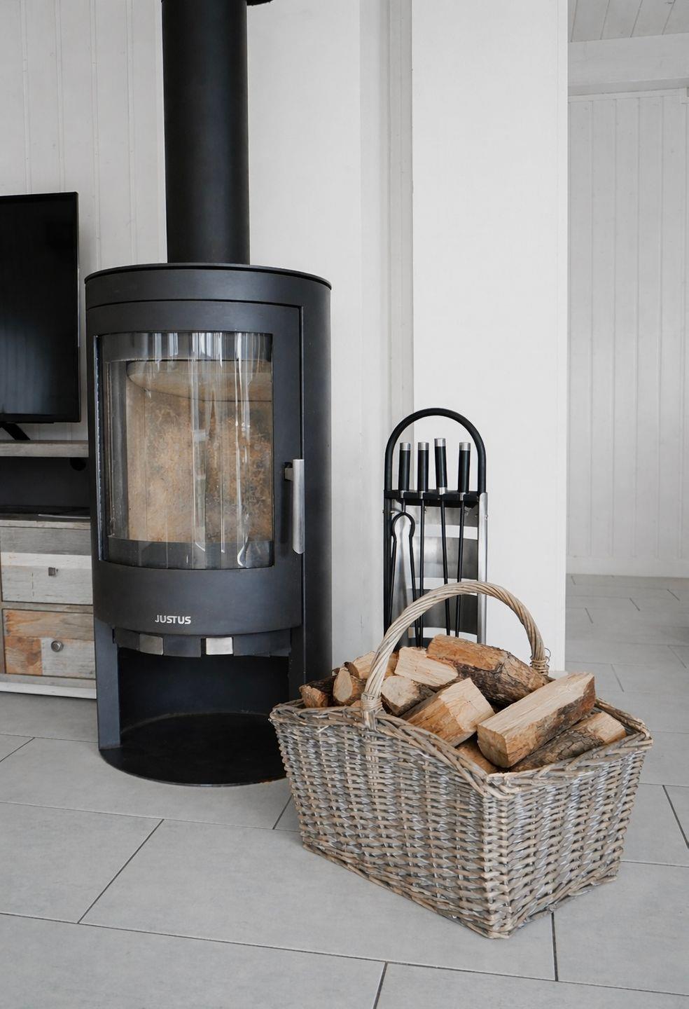 Der liebevoll gestaltete Wohnbereich besticht durch eine ebenfalls gehobene Ausstattung und eine große Fensterfront. Für alle Romantiker, Frostbeulen oder eben alle, die sich vom Knistern des Holzes und einer lodernden Flamme gern in den Bann ziehen lassen, steht ein Kaminofen zur Verfügung.