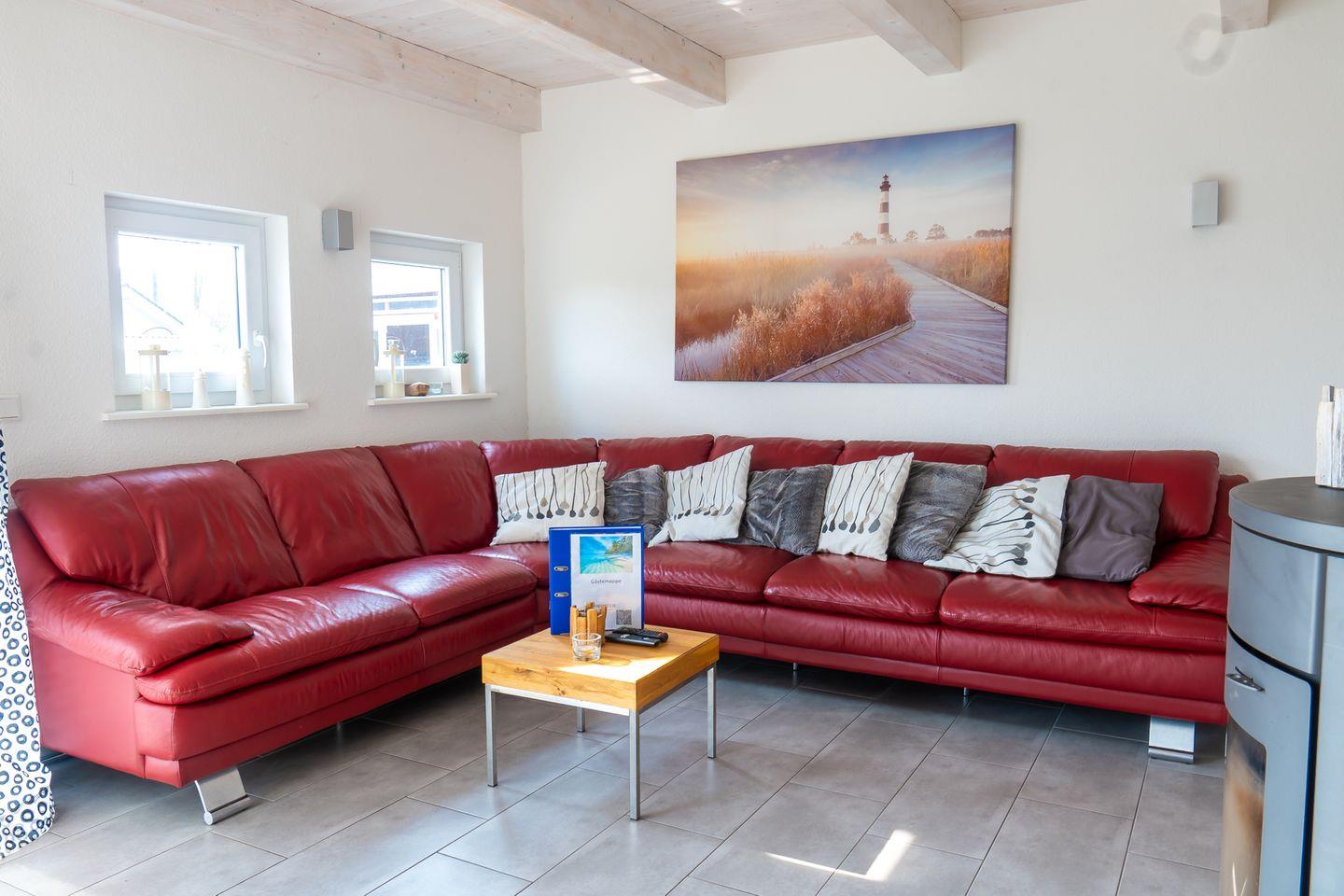 Das gemütliche Wohnzimmer lädt zum Entspannen und Verweilen ein. An kalten Tagen sorgen nicht nur die Fußbodenheizung, sondern auch ein Holzofen für angenehme Wärme. Ein moderner Flachbildfernseher und eine Mini-Stereoanlage sorgen für das nötige Entertainment.