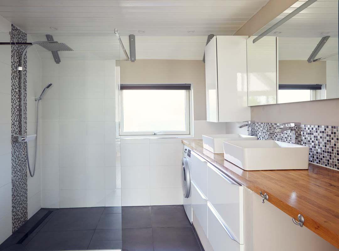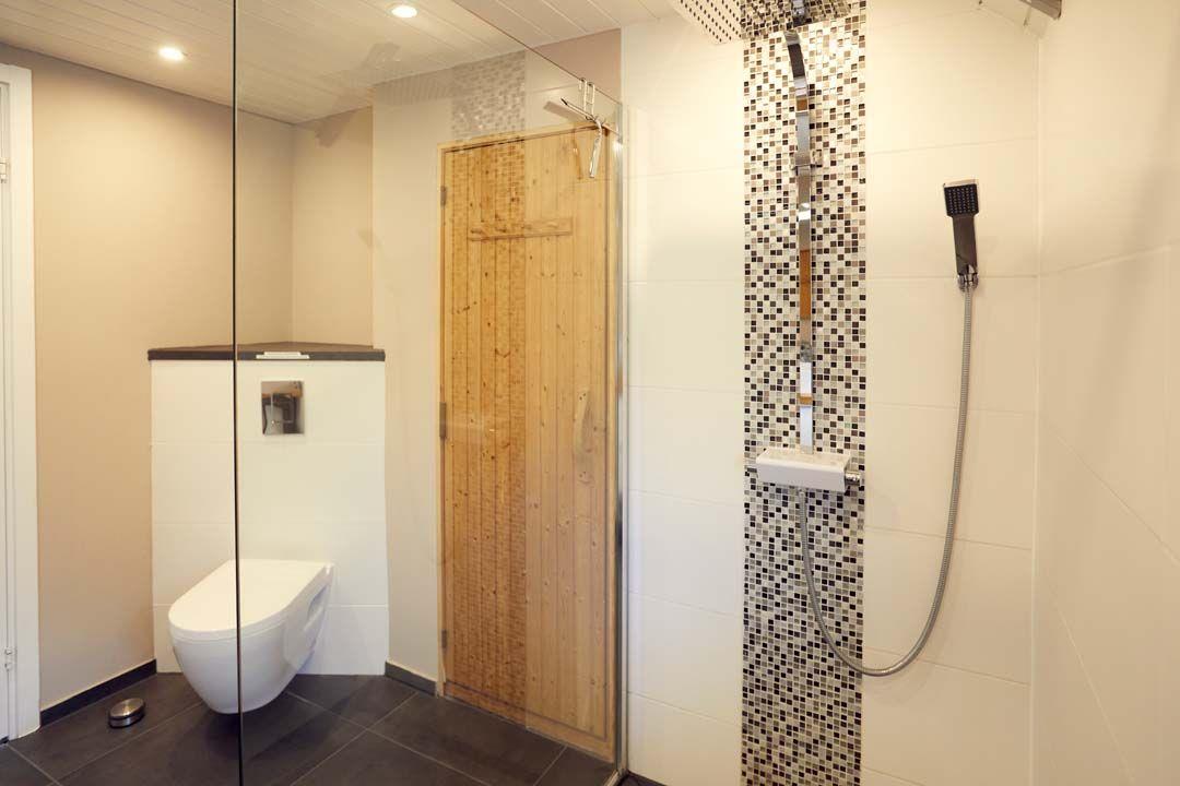 Im Erdgeschoss finden Sie auch ein Badezimmer mit Dusche, Waschbecken und WC für Ihre tägliche Bedürfnisse. Zusätzlich dazu steht Ihnen eine private Sauna zur Verfügung, in der Sie sich nach einem erlebnisreichen Tag entspannen und erholen können. Tauchen Sie ein in die wohlige Wärme und lassen Sie den Alltagsstress hinter sich.