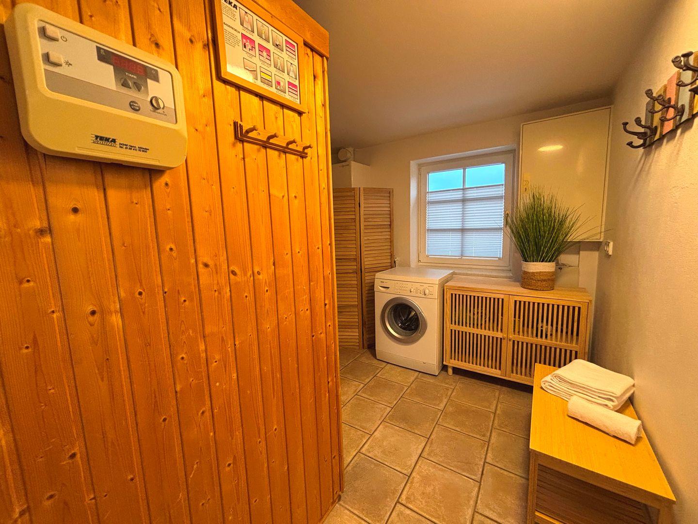 Ein weiteres Highlight des Ferienhauses ist die private Sauna, die zur Nutzung bereitsteht. Hier können Sie nach einem langen Tag am Strand die Seele baumeln lassen und sich verwöhnen. Zudem verfügt das Haus über zwei moderne Badezimmer, die mit Dusche und Badewanne ausgestattet sind. Die Fußbodenheizung sorgt für zusätzlichen Komfort, besonders in den kühleren Monaten.