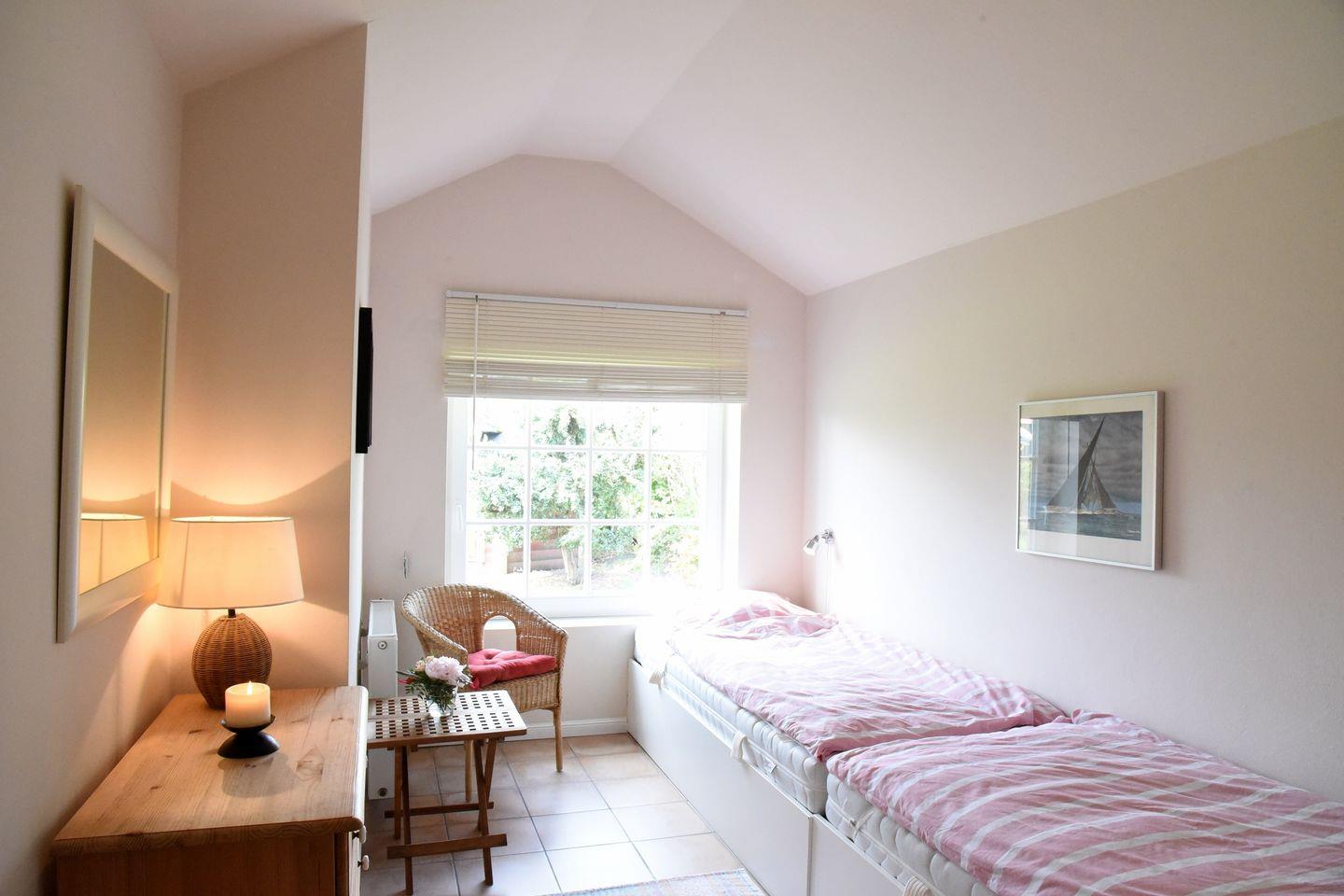 Das Objekt bietet Platz für insgesamt 6 Personen in 3 gemütlichen Schlafzimmern. Im ersten Schlafzimmer im Obergeschoss erwartet Sie ein komfortables Doppelbett mit Meerblick und einem eigenen TV. Die beiden anderen Schlafzimmer, eines im Obergeschoss und eines im Erdgeschoss, sind mit jeweils zwei Einzelbetten und einer Kommode ausgestattet. Alle Schlafzimmer bieten Ihnen einen Rückzugsort, in dem Sie sich wohlfühlen können.