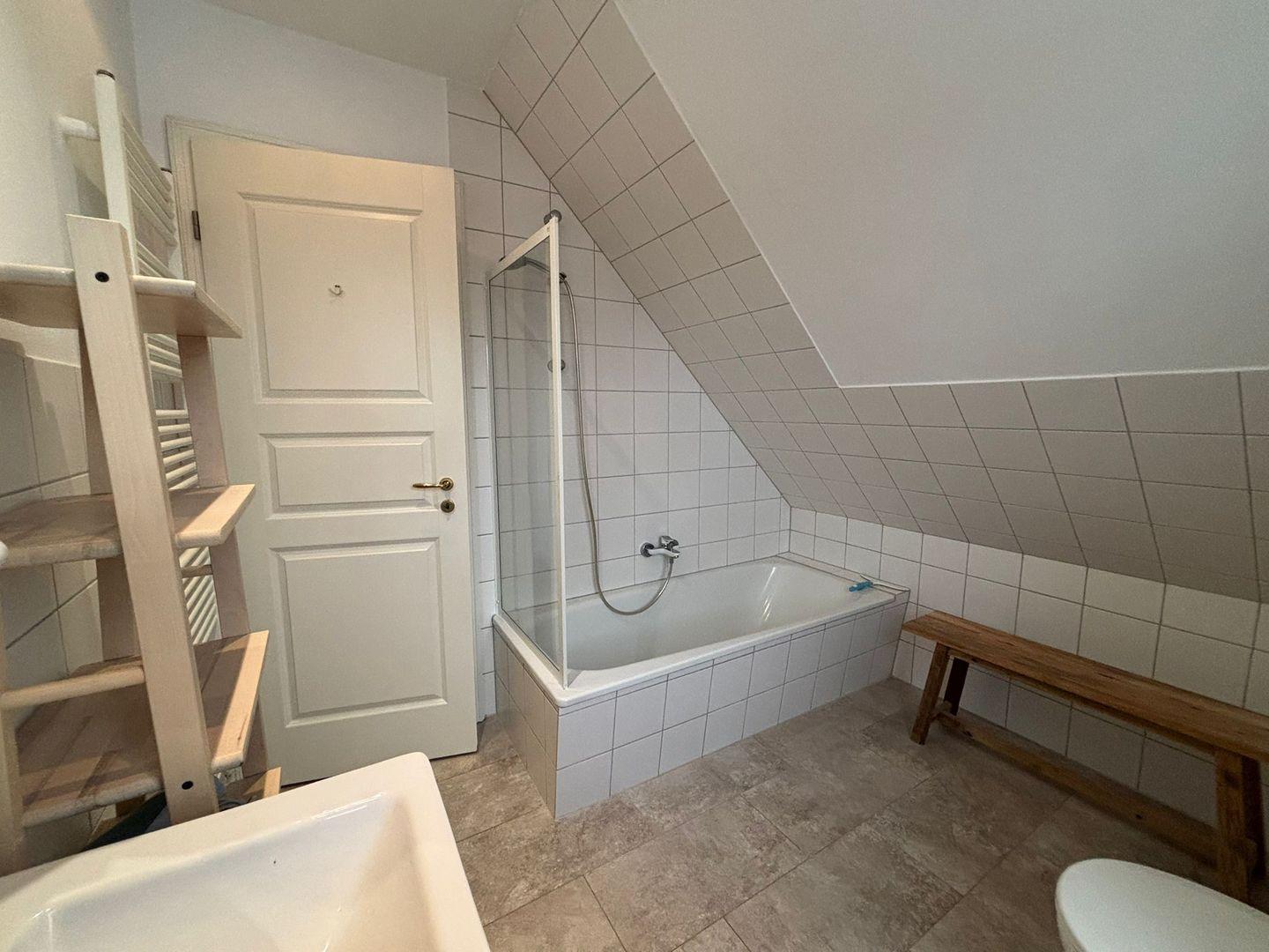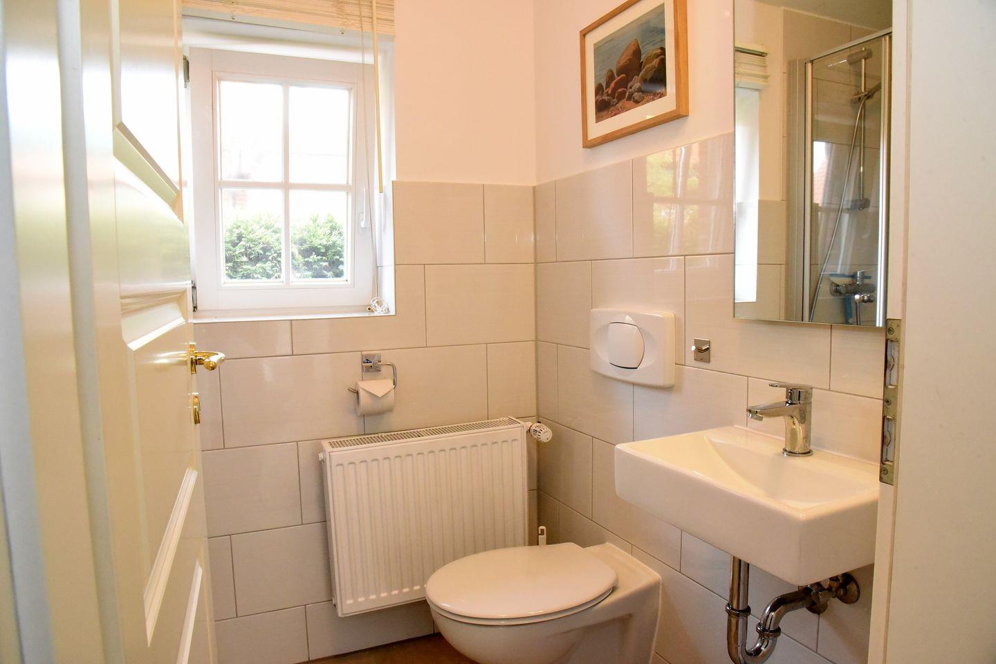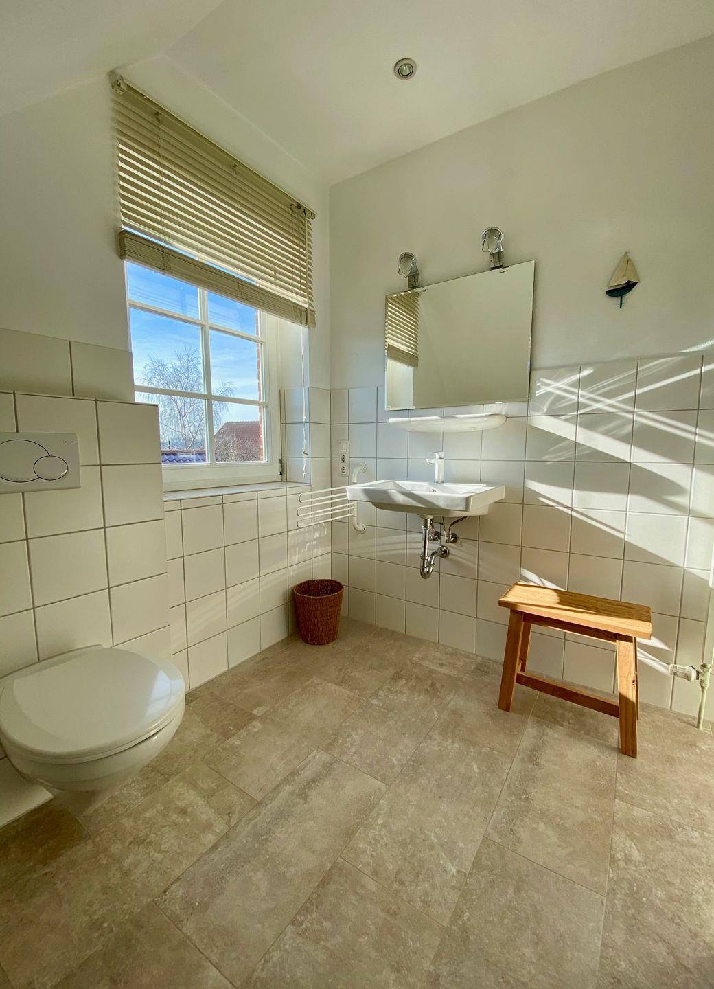 Das Objekt verfügt über zwei Badezimmer, eines im Obergeschoss und eines im Erdgeschoss. Das erste Bad ist mit einer Badewanne, einem WC und einem Waschbecken ausgestattet, während das zweite Bad eine Dusche, ein WC und ein Waschbecken bietet.