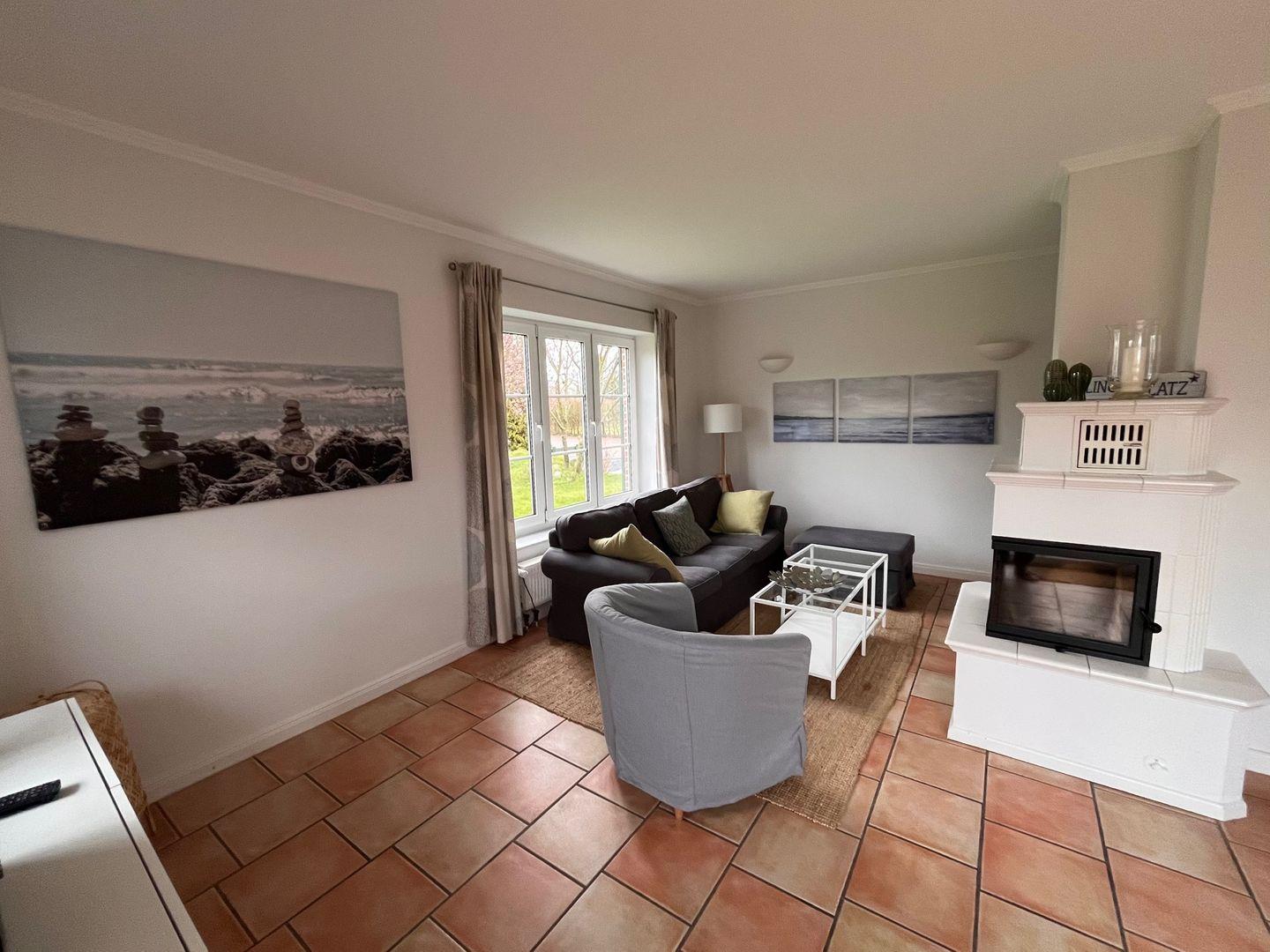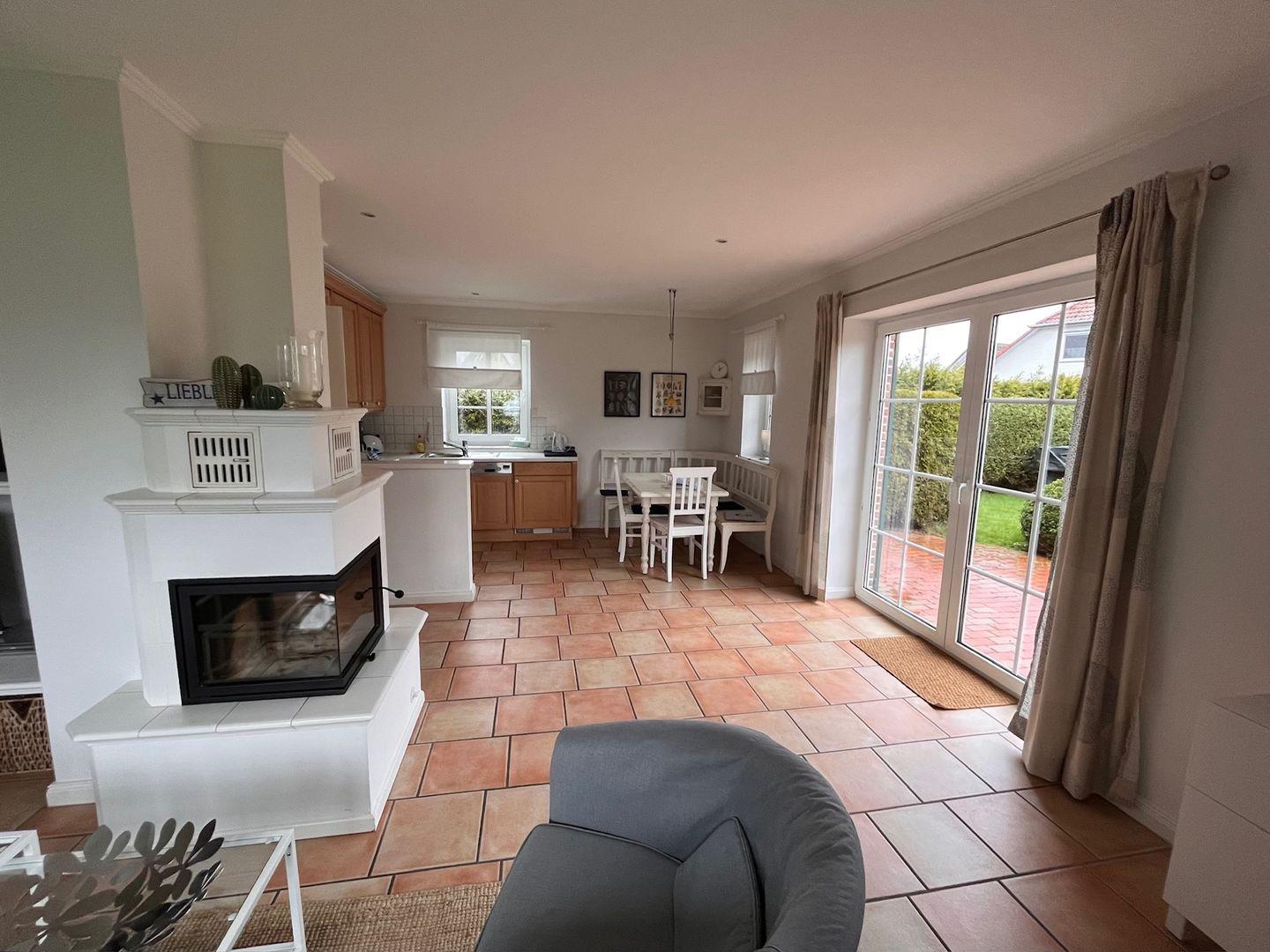 Beim Betreten des Hauses werden Sie von einer modernen und offenen Küche begrüßt. Die Einbauküche verfügt über ein Cerankochfeld, eine Mikrowelle, einen Kühlschrank mit Gefrierfach, eine Spülmaschine, eine Kaffeemaschine, einen Wasserkocher und einen Toaster. Hier können Sie nach Herzenslust kochen und gemeinsame Mahlzeiten zubereiten. Der angrenzende Wohnbereich lädt mit einem bequemen Sofa und zwei Sesseln zum Entspannen ein. Genießen Sie die wohlige Atmosphäre vor dem Kamin und schauen Sie sich einen Film auf dem Flachbildfernseher an oder hören Sie Ihre Lieblingsmusik über die Stereoanlage mit Radio und CD-Player.