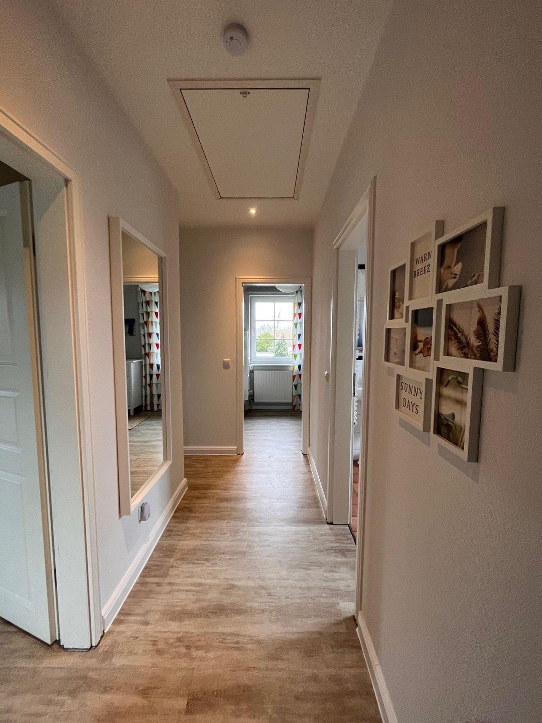 Damit Sie sich wie zu Hause fühlen, gibt es zwei Badezimmer in der Unterkunft. Im Erdgeschoss befindet sich ein Badezimmer mit Dusche, Waschbecken, WC sowie einer Waschmaschine und einem Trockner für Ihre persönliche Wäsche. Im Obergeschoss erwartet Sie ein weiteres Badezimmer mit Badewanne, Waschbecken, WC und einer gemütlichen Handtuchheizung. Hier können Sie sich nach einem erlebnisreichen Tag entspannen und erfrischen.