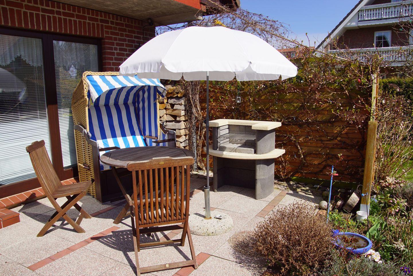 Willkommen in unserem traumhaften Ferienobjekt! Hier erwartet Sie ein unvergesslicher Aufenthalt mit allem Komfort, den Sie sich wünschen können. Die Außenausstattung bietet Ihnen zahlreiche Annehmlichkeiten, um Ihren Urlaub in vollen Zügen zu genießen. Auf der großzügigen Terrasse können Sie die frische Luft und die Sonne auf einer der vier bequemen Liegen oder unter dem schattenspendenden Sonnenschirm ausgiebig genießen. Der angrenzende Rasen lädt zum Entspannen oder zum Spielen ein und bietet genügend Platz für Ihre persönlichen Aktivitäten im Freien. Ihr Fahrzeug können Sie bequem auf dem eigenen PKW-Stellplatz abstellen, der direkt zur Unterkunft gehört. Wenn Sie sich nach Entspannung sehnen, steht Ihnen außerdem eine Sauna zur Verfügung, in der Sie die Seele baumeln lassen können. Für die Aufbewahrung Ihrer persönlichen Gegenstände steht Ihnen ein praktischer Abstellraum zur Verfügung.