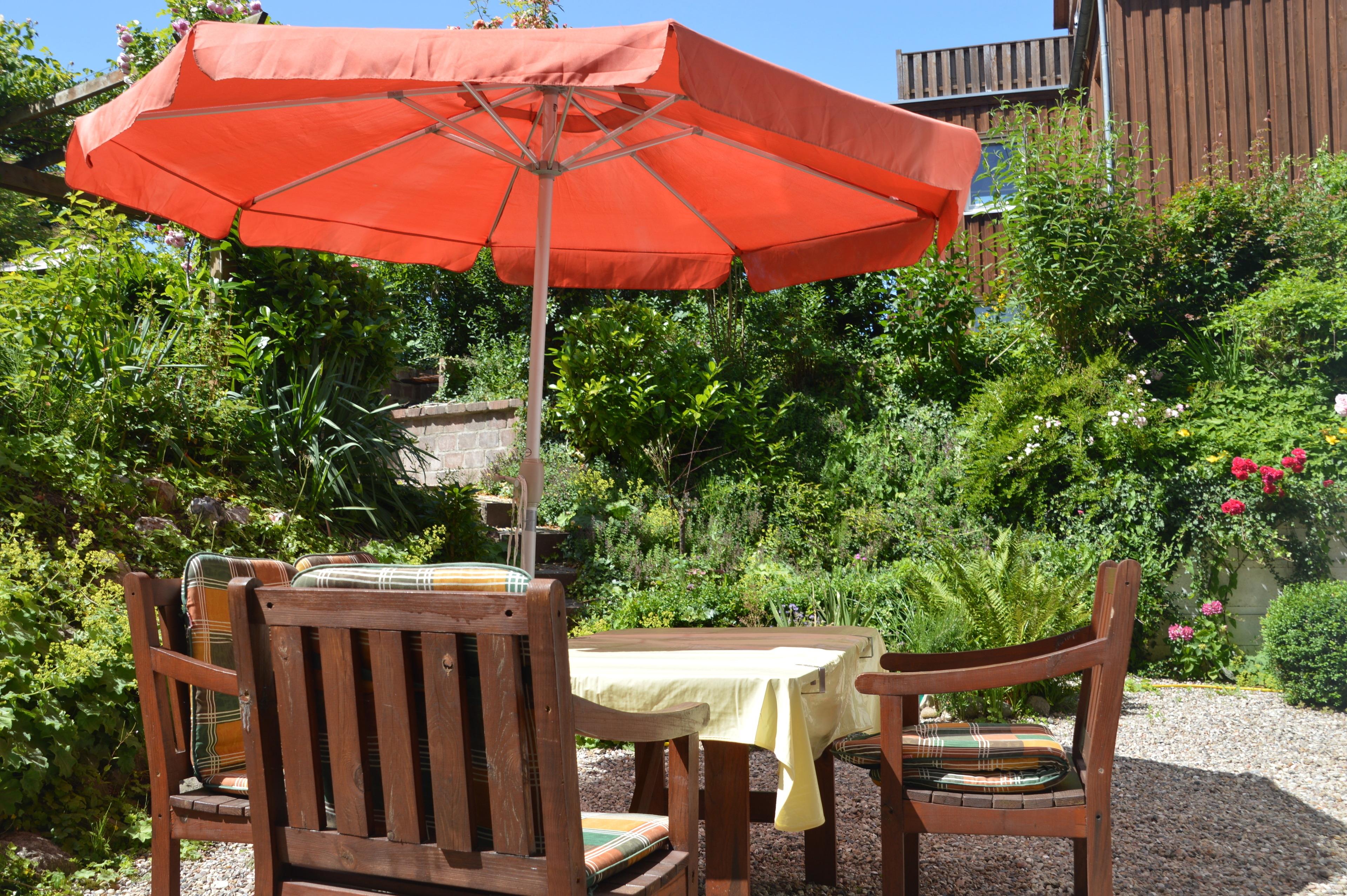 Die Terrasse bietet ausreichend Platz, um gemeinsam die Mittagssonne und vielleicht auch einen schönen Grillabend in der Natur zu genießen.