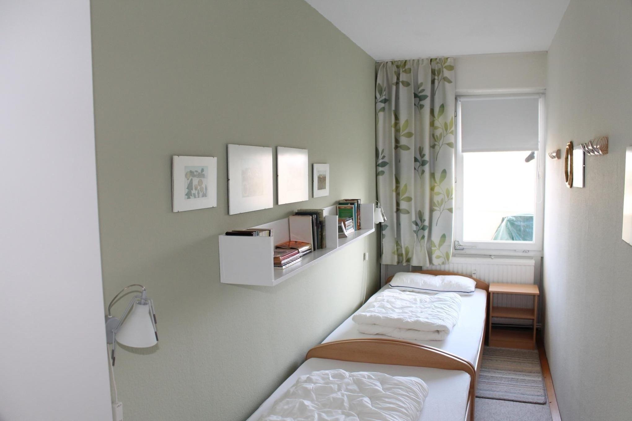 Die Ferienwohnung (Ostseite), ist 40 m² groß und befindet sich auf der 4. Etage im "Haus Flensburg". Sie ist für max. 4 Personen geeignet. Aus der gemütlichen Sitzecke im Wohnraum mit Funktionssofa können mit wenigen Handgriffen zwei weitere Schlafplätze entstehen.