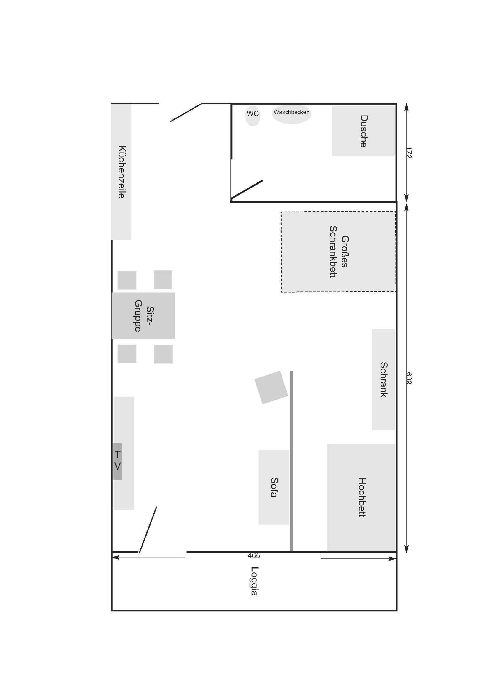 Diese, und die durch einen kleinen Flur getrennte Wohnung E 528, können auch zusammen gemietet werden. Dies Arrangement bietet dann für eine Großfamilie oder eine kleine Gruppe (Imax. 8 Personen eine Einheit.