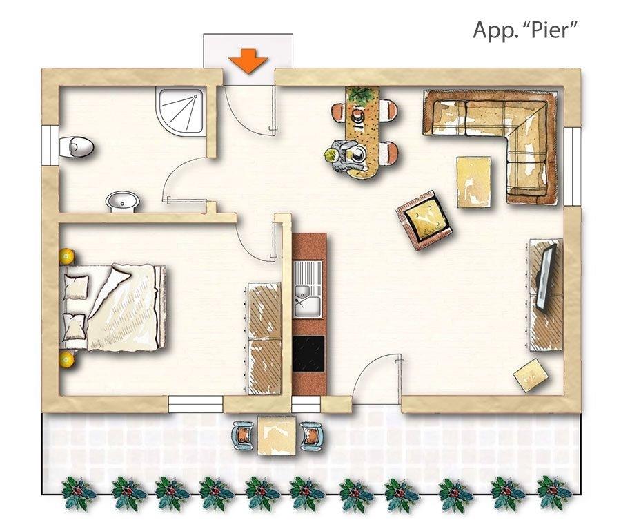 Die Apartments sind großzügig geschnitten und hell und freundlich eingerichtet. Der Wohnbereich mit Sofa und Flachbild-TV bietet viel Raum für gemütliche Fernsehabende. Die angrenzende Küchenzeile mit einem Esstisch für bis zu 4 Personen ist bestens geeignet für Lunch und Dinner in gemeinsamer Runde. Im Eltern-Schlafzimmer findet ihr ein Doppelbett Die Schlafcouch im Wohnzimmer kann für zwei weitere Personen aufgebettet werden. Auf dem Balkon gönnt ihr euch eine Portion Ostseebrise und schaut auf unseren Garten Die Apartments befinden sich auf der 1. Etage des Gebäudes "Heimathafen "