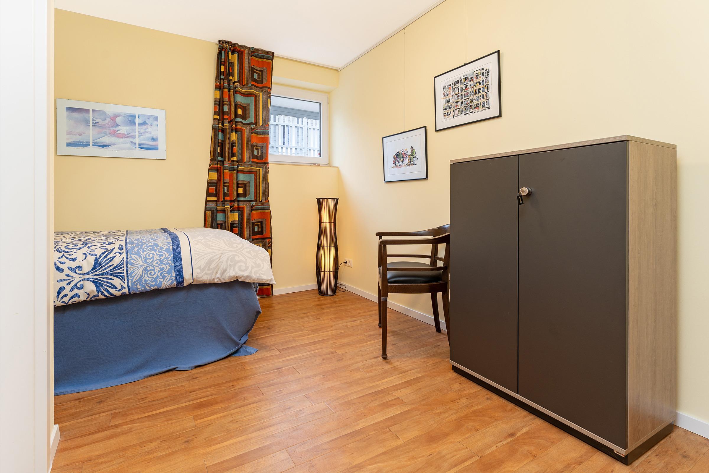 Schlafzimmer 3: 1 Boxspringeinzelbett (100x200 cm), Verdunkelung: Vorhang, Platz für ein Babybett vorhanden