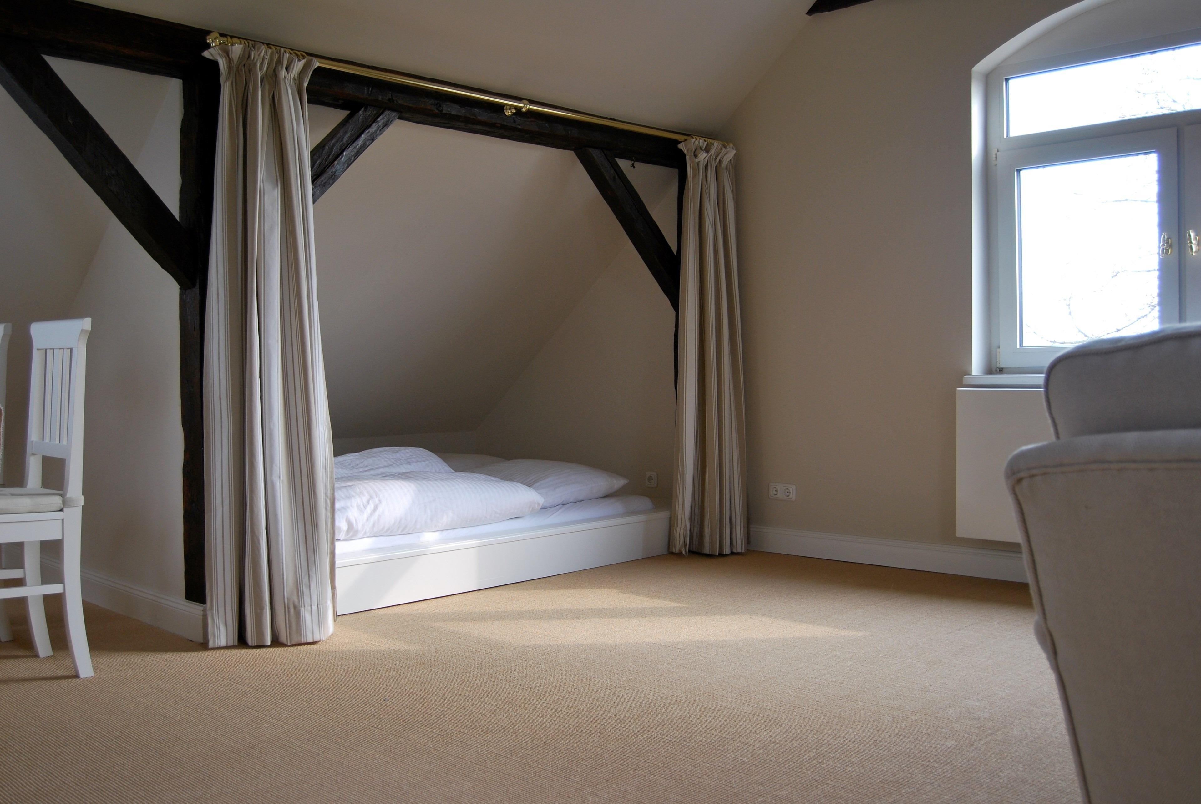 Das Turm-Appartement, im Obergeschoß der Villa Baltica, ist ein gemütliches Dachgeschoßstudio mit sichtbarer Tragstruktur in Holz und separatem Bad. Neben einer zum Wohn-/Essbereich offenen hochwertigen und vollständig ausgestatteten Küche finden Sie hier eine gemütliche Sofaecke mit englischen Landhausmöbeln und moderner Unterhaltungselektronik (LCD-TV, DVD, CD-Radio, WLAN). Die Besonderheit des Turmappartements ist ein gemütliches Alkovendoppelbett.