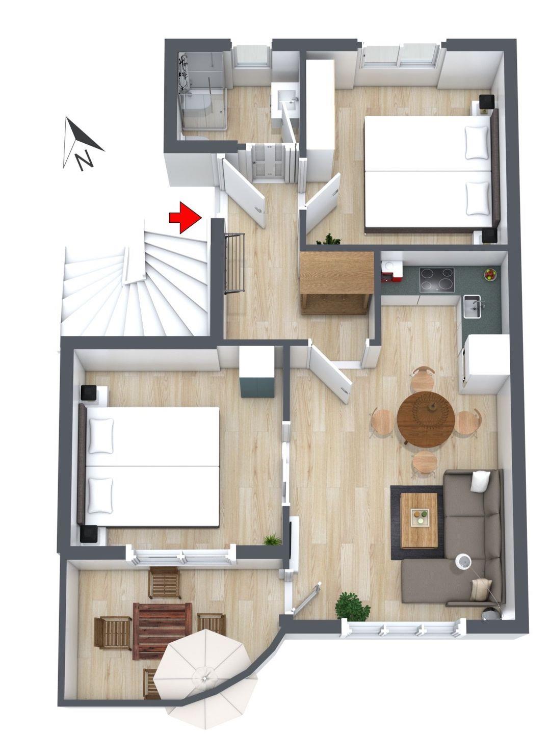 Die Ferienwohnung hat eine sehr schöne Raumaufteilung und besteht aus einem gemütlichen Wohnzimmer mit Südbalkon, eine offene Küche mit angrenzendem Essbereich, 2 separate Schlafzimmer die ausreichend Platz bieten und ein geräumiger Flur. Die Ferienwohnung hat eine Gesamtwohnfläche von ca. 50qm und liegt nur 100 Meter vom Strand entfernt. In der Nähe befindet sich der Strandabschnitt mit der DLRG-Station und bis zur Seebrücke sind es nur ein paar Meter. Die Ferienwohnung liegt in einer sehr ruhigen Nebenstraße und vom Parkplatz gelangt man durch einen Fußgängerweg direkt zum Strand. Alles ist liebevoll und modern eingerichtet und bei Ihrer Ankunft kann der Urlaub sofort beginnen, denn für die Erstausstattung ist alles vorhanden. Eine schöne, komplett renovierte Ferienwohnung für 4 Personen.