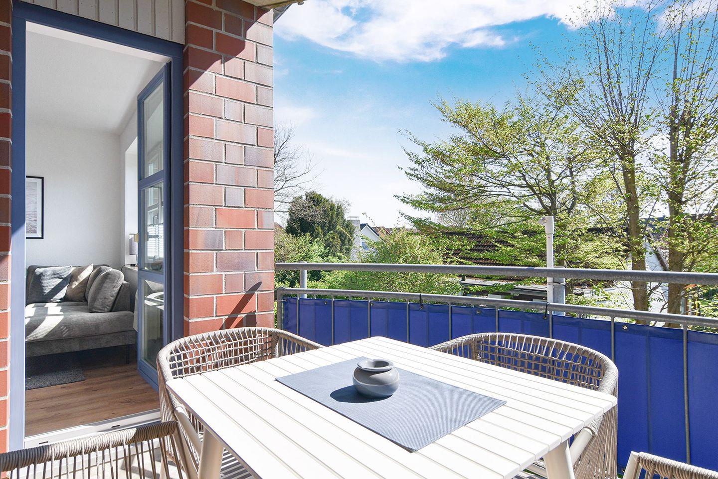 Moderne Ferienwohnung mit Südbalkon, nur 100 Meter vom Schönberger Strand entfernt.