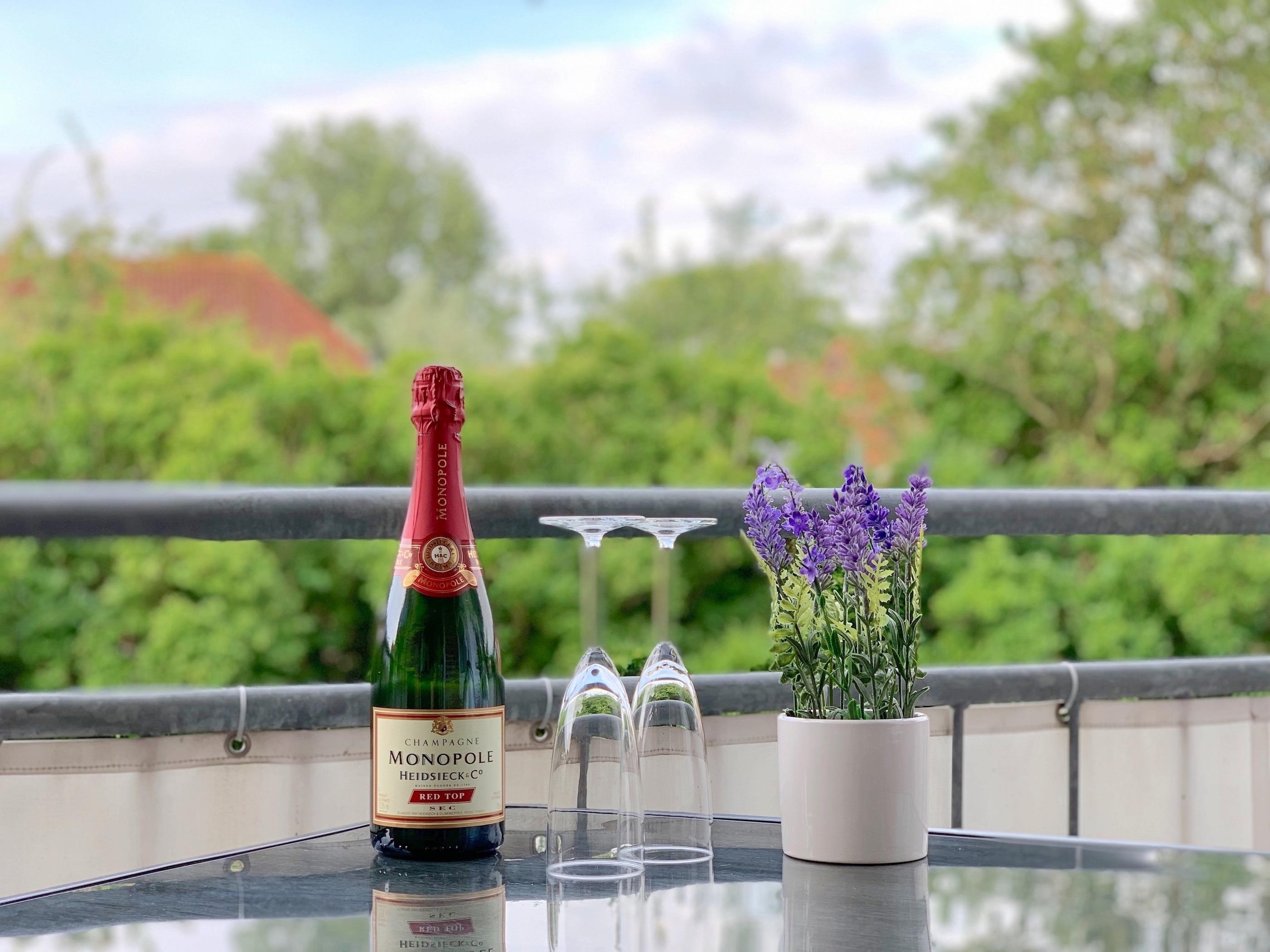 Noch nicht genug gesonnt? Nach einem aktiven Badetag am Strand könnt ihr die Sonne bis zum späten Abend auf dem eigenen Balkon in Südwest-Ausrichtung genießen - Blick ins Grüne inklusive.