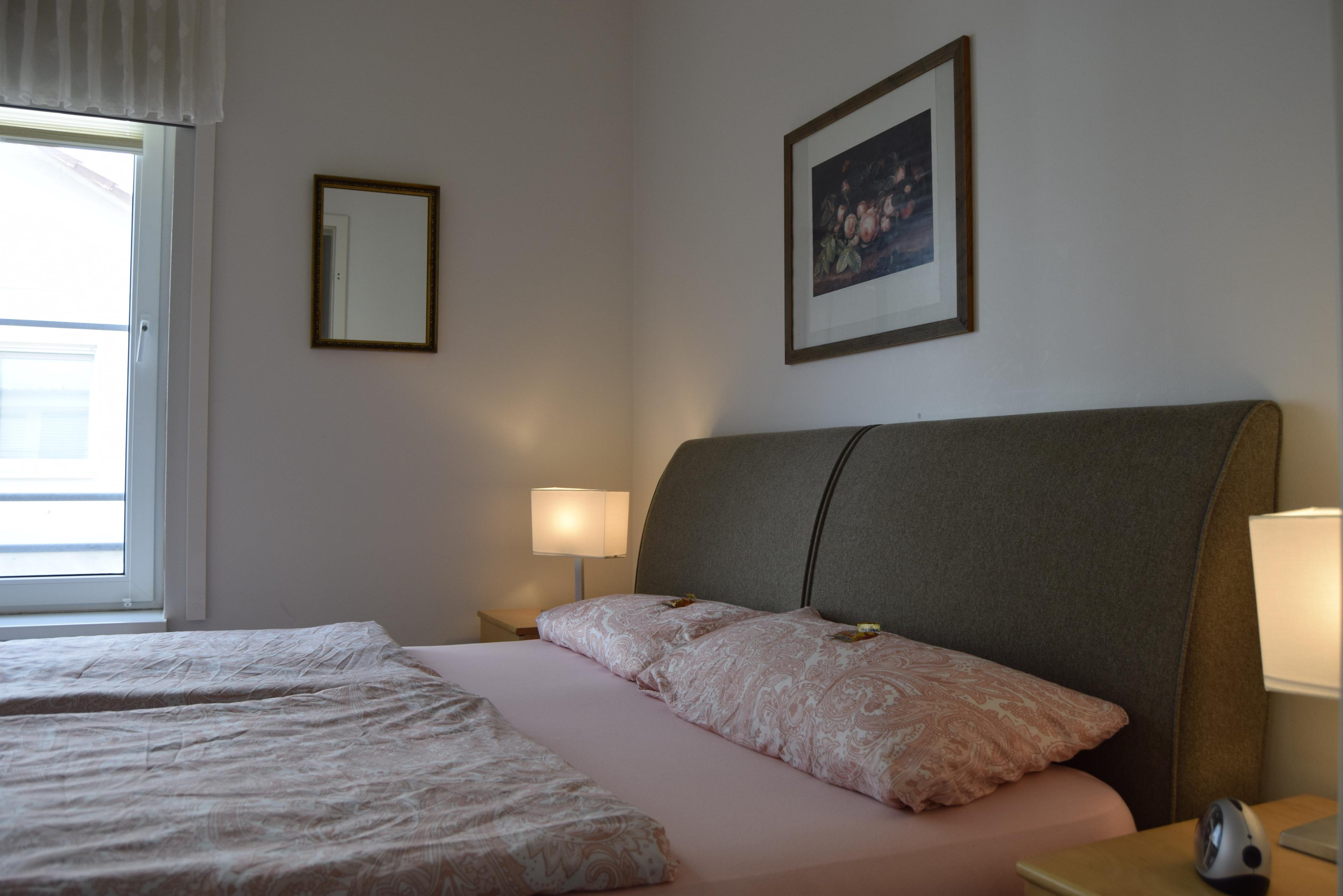 Es verfügt über insgesamt drei Zimmer. Ein Wohn-/Esszimmer mit abgetrennter Küche, ein kleines Schlafzimmer (7,3 m²) mit einem Doppelbett (160 x 200 cm), sowie ein kleines Kinderzimmer (Kind bis 6 Jahre) mit einem Schlafsessel und ein Badezimmer (4,7 m²) mit Dusche/WC. Im Gemeinschaftskeller befindet sich eine Sauna, diese ist mit einem Münzautomat ausgerüstet.
