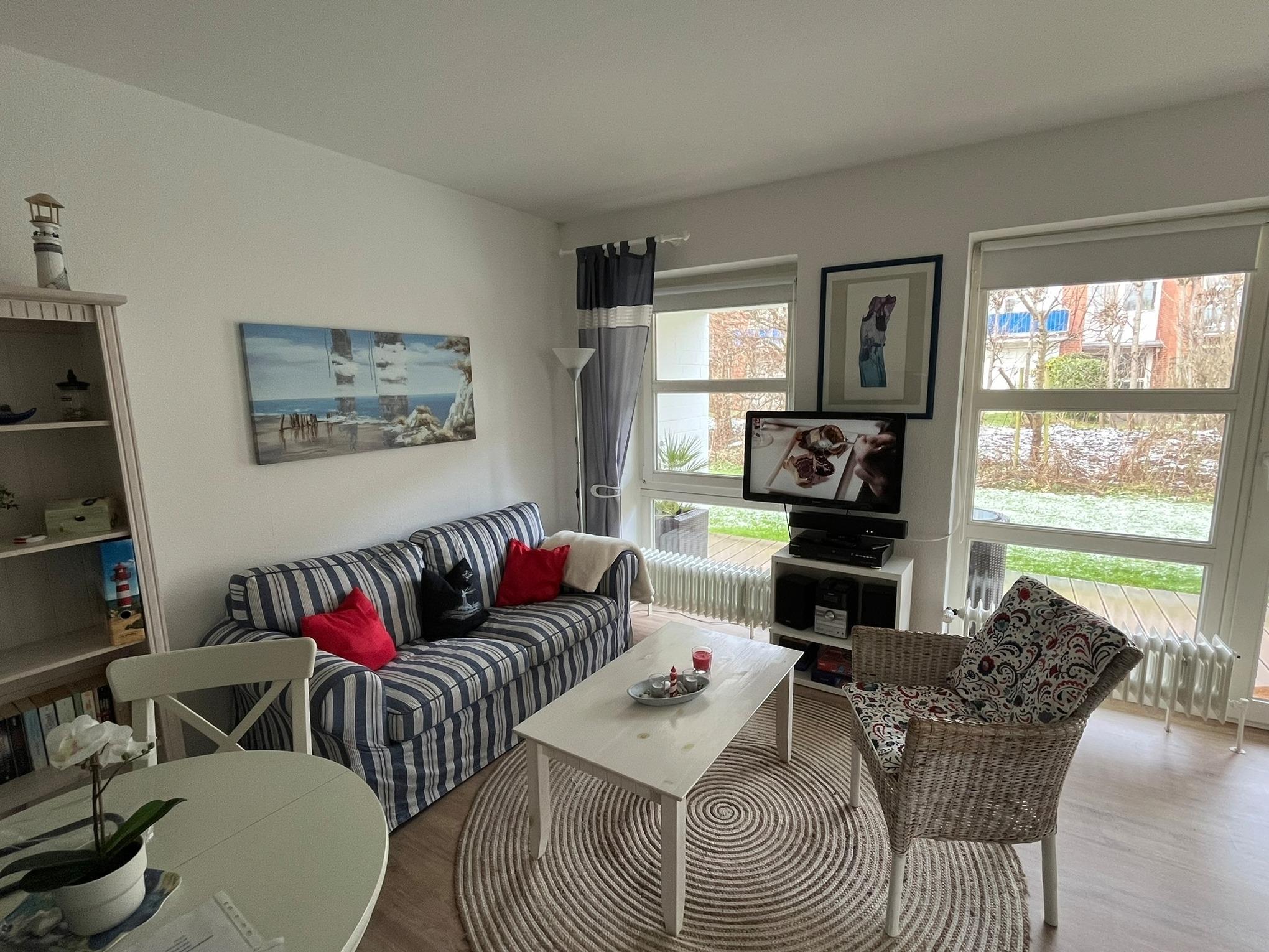 Sehr gerne bieten wir Ihnen dazu unser schönes Appartement an, ca. 300 m vom Strand, maritim und sehr gemütlich eingerichtet, Laminat- und Fliesenböden, barrierefrei, auch die Dusche.