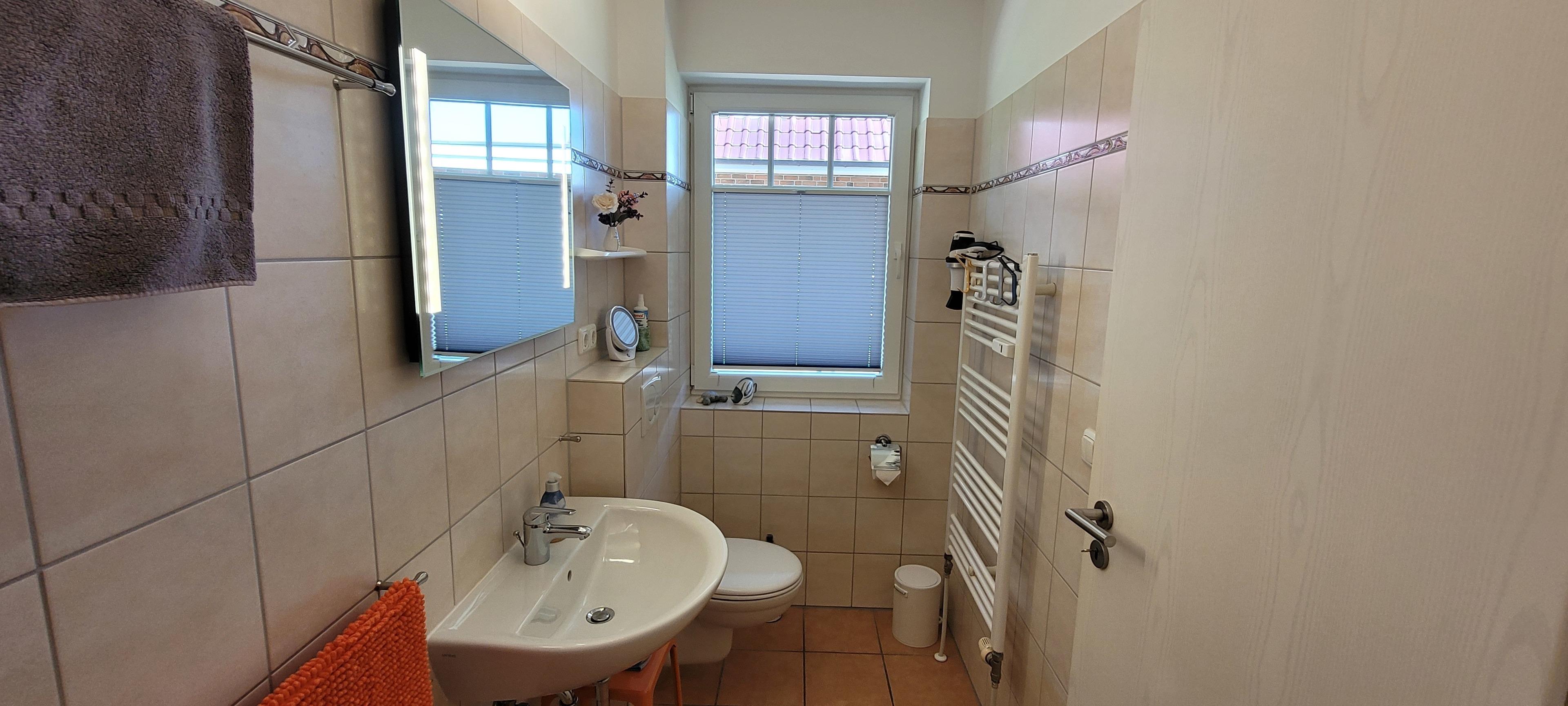 Im Badezimmer finden Sie eine Dusche, Waschbecken und WC. Der Spiegel ist beleuchtet und es gibt genügend Ablageflächen. Auch ein Fön ist vorhanden. Alle Dinge, die Sie für die kleine Zwischendurch-Reinigung benötigen, finden Sie im geräumigen Abstellraum der Wohnung.