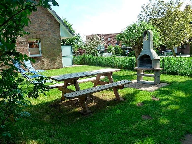 Eine Waschmaschine steht allen 4 Wohnungen gemeinsam zur Verfügung, ebenso ein Grillkamin auf der Wiese im hinteren Teil des Grundstückes. Vor dem Haus gibt es genügend Platz, um mitgebrachte oder geliehene Fahrräder abzustellen. Ihnen steht ein Parkplatz direkt vor dem Haus zur Verfügung.