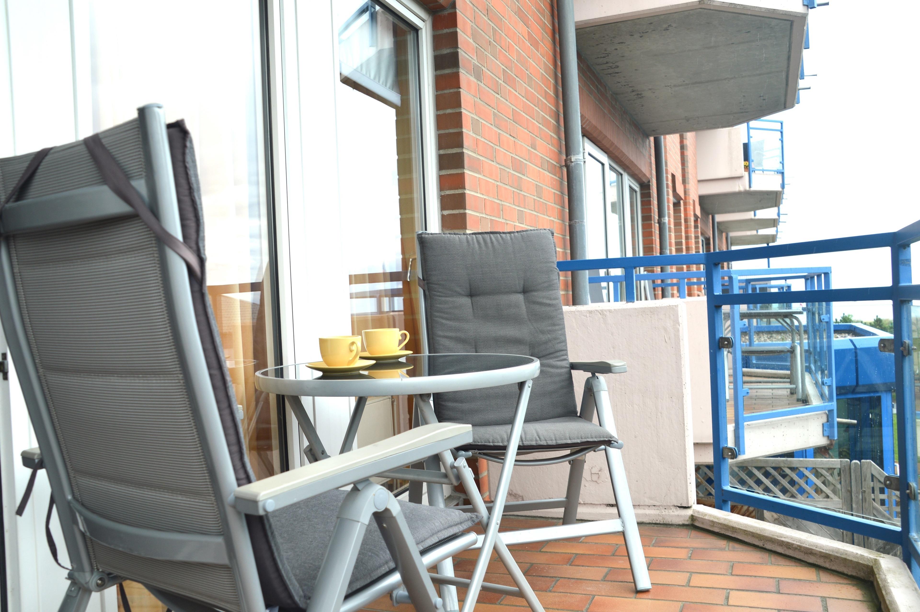 Das 32m² große Appartement verfügt über insgesamt zwei Räume. Im separaten Schlafzimmer (6,08 m²) finden Sie zwei Einzelbetten (je 0,90 x 2,00 m) vor. Das Wohnzimmer verfügt über ein bequemes Sofa, einen Flachbildfernseher mit DVD-Player, eine Stereoanlage und eine gemütliche Essecke. Vom Wohnzimmer aus geht es auf den 6 m² großen Balkon. Von hier aus haben Sie einen seitlichen Meerblick über den Deich. Die Kochnische ist mit einem 2-Platten-Herd, einer Mikrowelle mit Backfunktion und einem Kühlschrank mit Gefrierfach ausgestattet. Das Badezimmer (3,4 m²) verfügt über eine Dusche und WC.