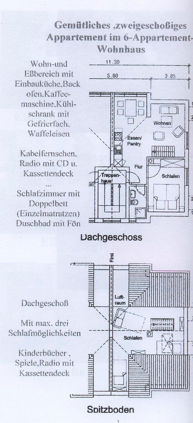 Das NICHTRAUCHER-Appartement ist zwar offiziell (nach Wohnflächenverordnung und wegen der Dachschrägen) "nur" 42 m² groß, wirkt und ist aber eigentlich wesentlich größer. Es verfügt über 2 Zimmer im 2. OG des Appartementhauses, eine Galerie (im 3. OG) erreicht man vom Wohnraum aus über eine Treppe. Diese ist teilweise offen zum Wohnraum. Hier befindet sich ein Tandembett und es ist genügend Platz zum Spielen der Kinder. Der Raum mit Blick Richtung Ostsee kann auch als Rückzugsort für Erwachsene genutzt werden.