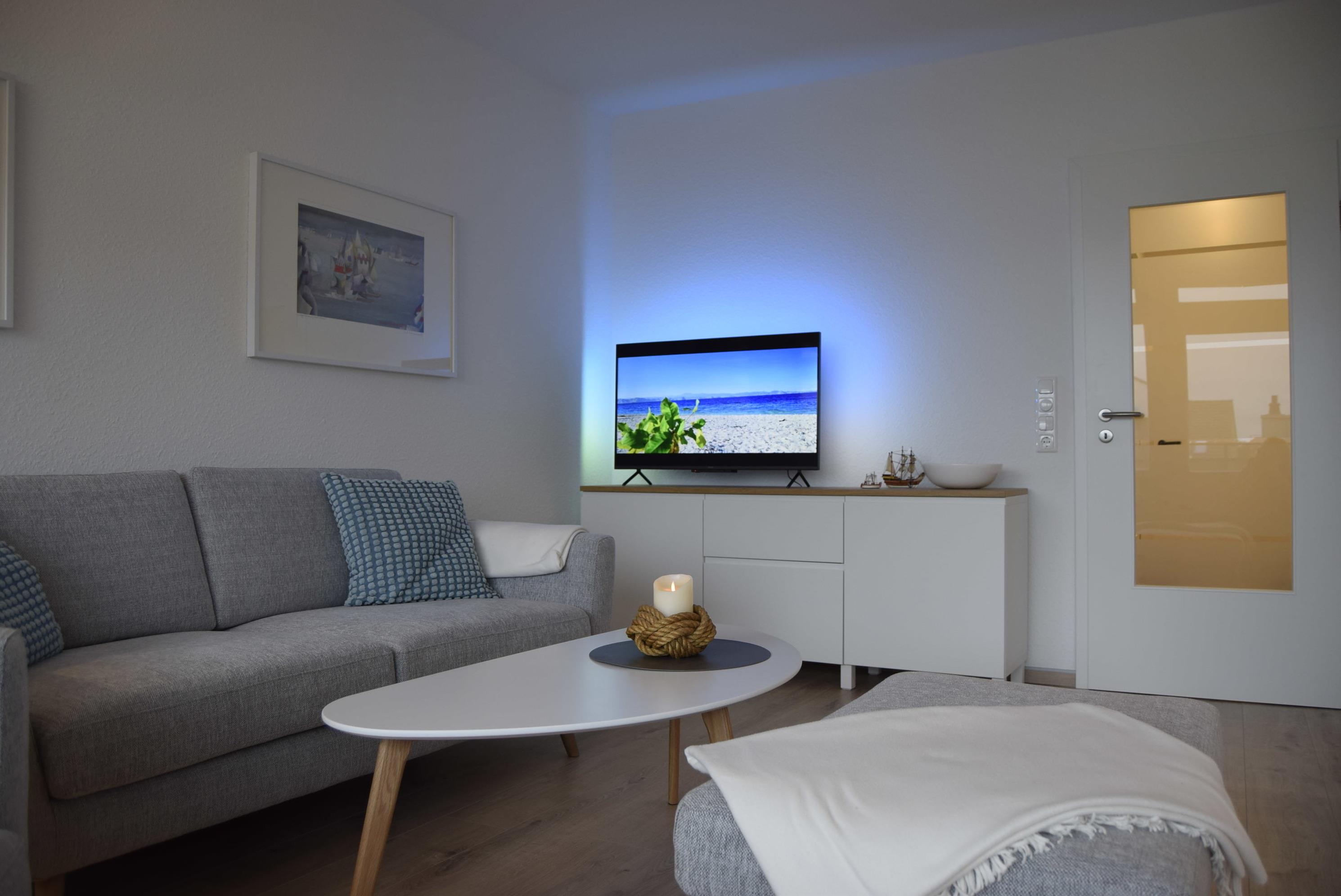 Die Wohnung verfügt über Glasfaser W-Lan und Waipu-TV.