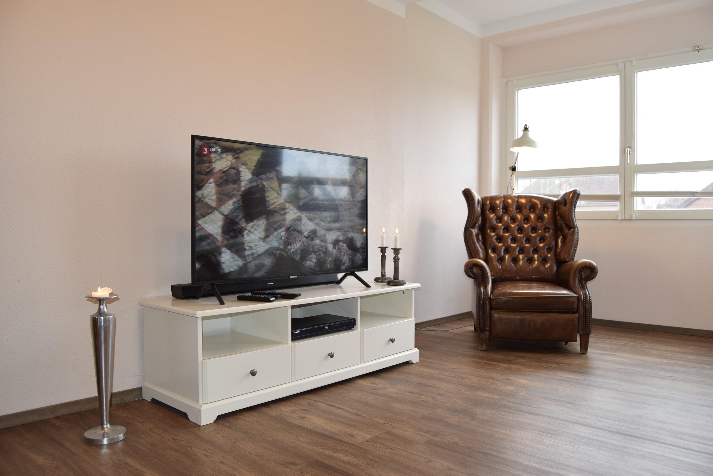 Unterhalten werden Sie bei schlechtem Wetter (obwohl wir das ja gar nicht kennen) von einer modernen Bluetooth-Box und einem SAMSUNG LCD Flachbild TV. Das Wohnzimmer besticht durch ein wunderschönes, antikes Gründerzeit Vertiko. Die Couch ist hart gepolstert, auf ihr kann man prima mit 2 Personen nächtigen. Im Duschbad erwartet Sie ein Duschbereich der mit einer Regendusche ausgestattet wurde.