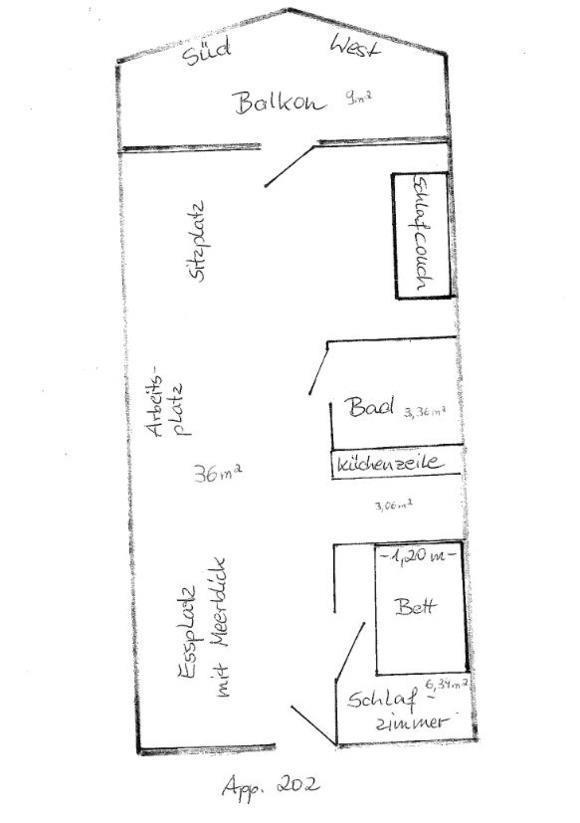 - kleiner Schlafraum (6,34 qm) mit 1,20 m breitem Bett