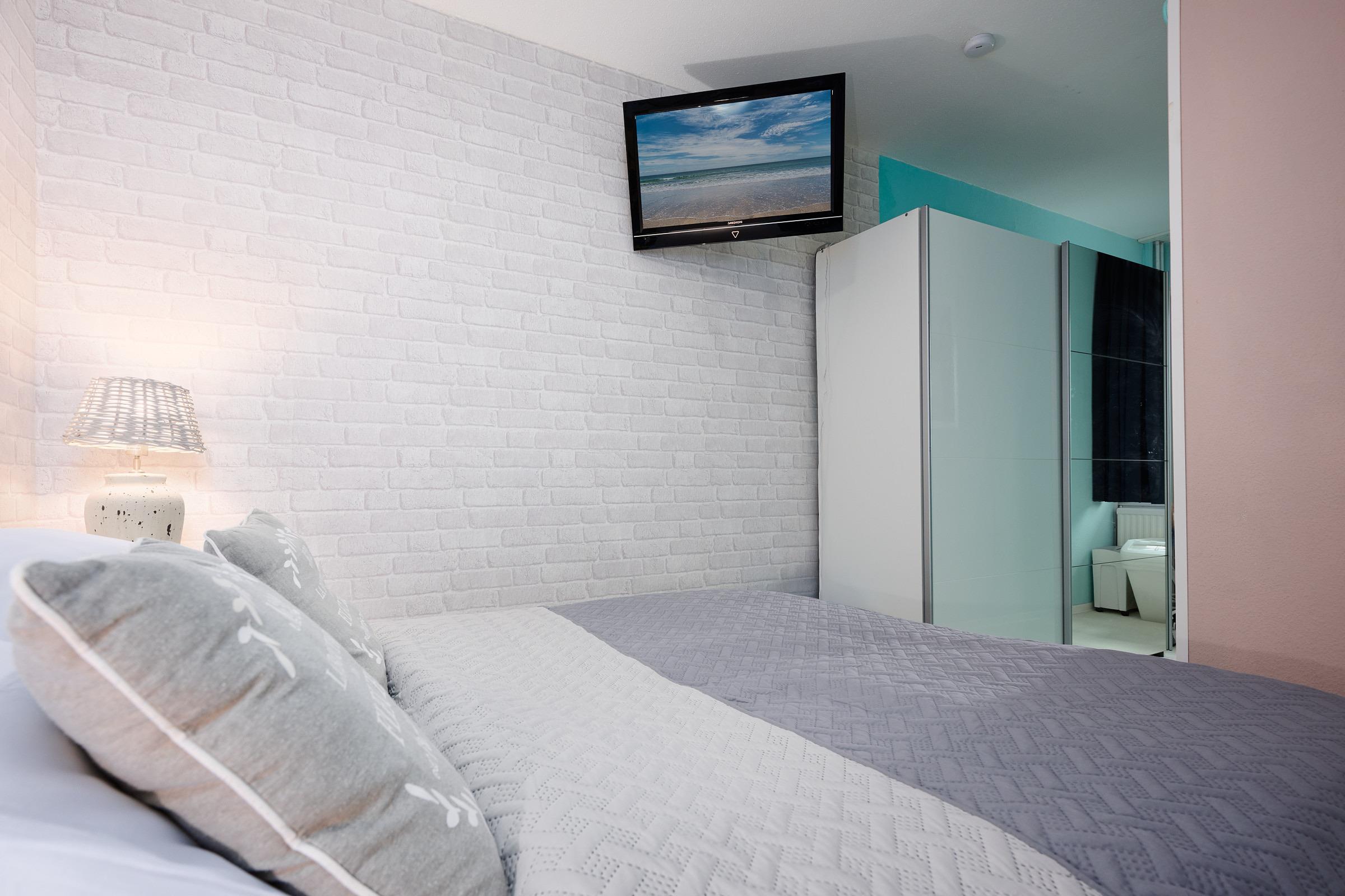 Bei Wind und Wetter können Sie auf dem geschlossenen Balkon entspannen und die lauen Sommernächte bei geöffneten Fenster genießen. Das separate Schlafzimmer bietet neben einem Doppelbett (160x200) auch einen Kleiderschrank.